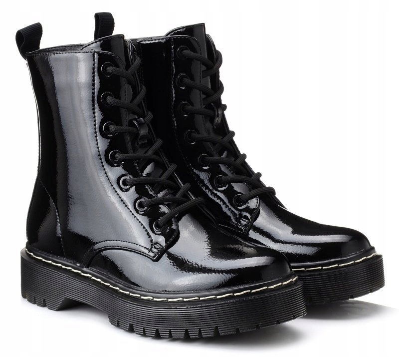 - Черные лаковые ботинки женские от S.Barski, из пластика.