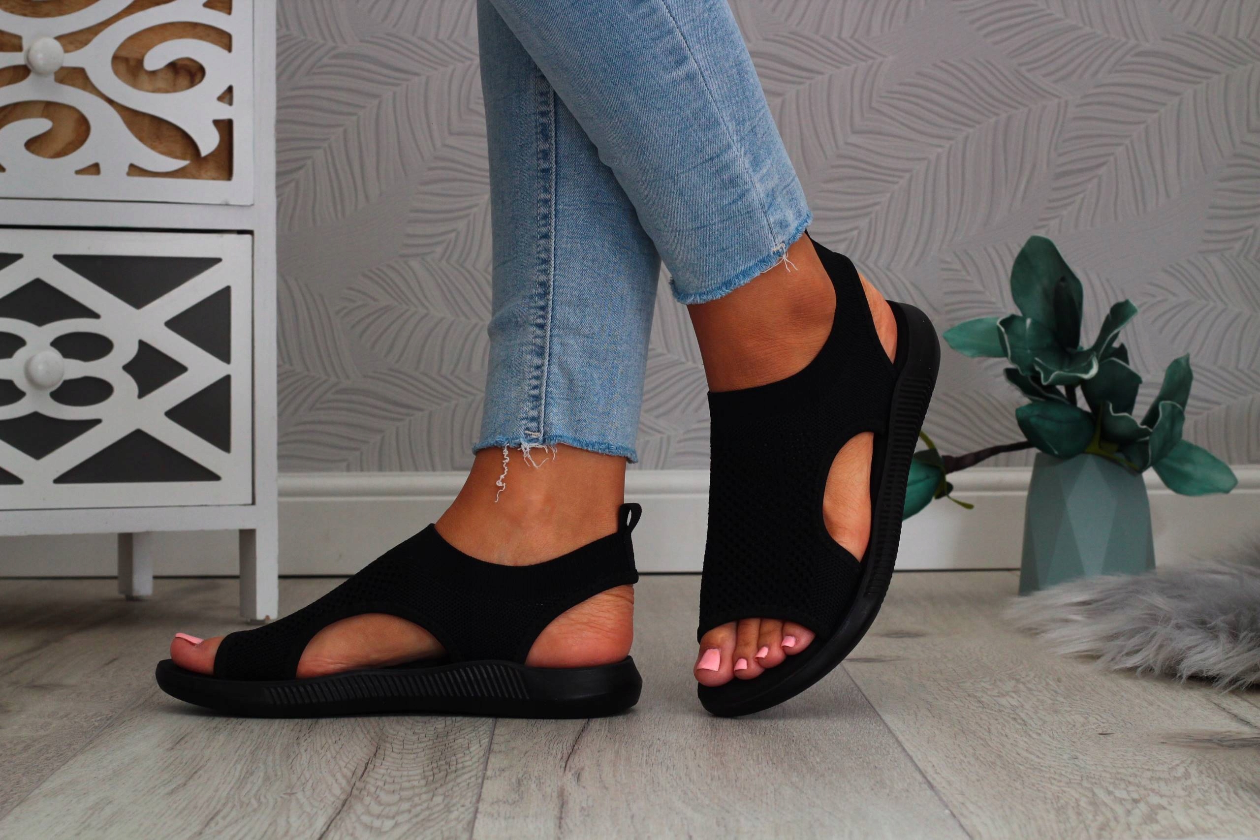 Блэк -спортивные женские сандалии в эластичной сети