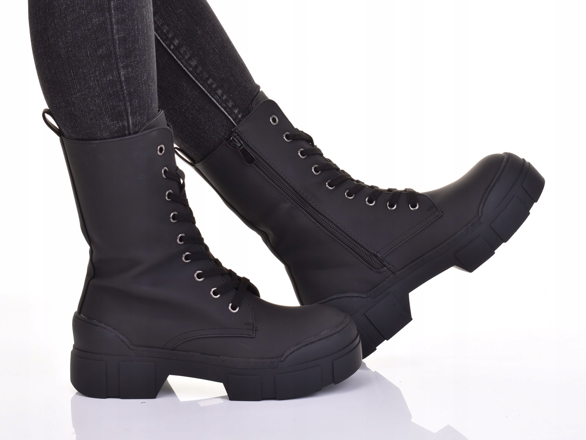 ЖЕНСКИЕ БОТИНКИ НА ПЛАТФОРМЕ, ЧЕРНАЯ КОЖА, С УТЕПЛЕНИЕМ