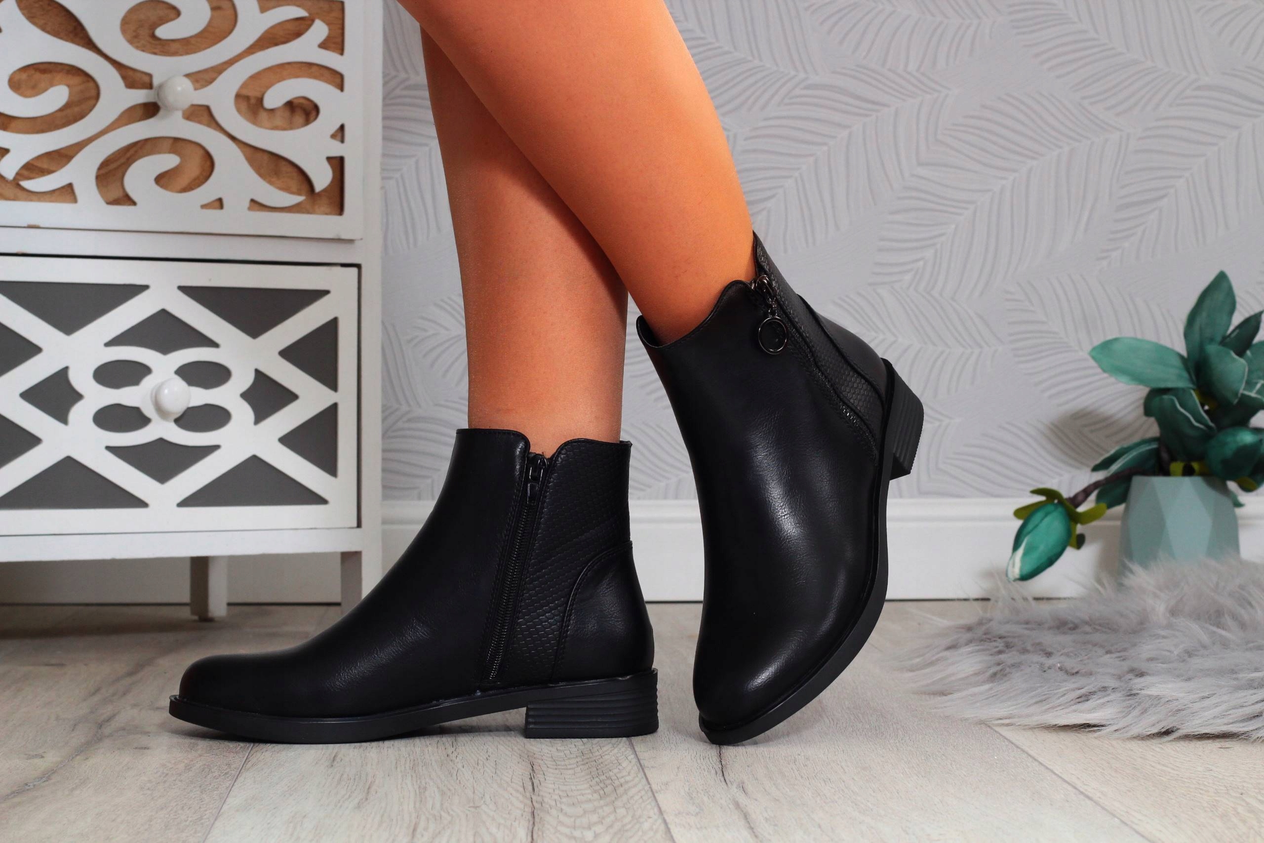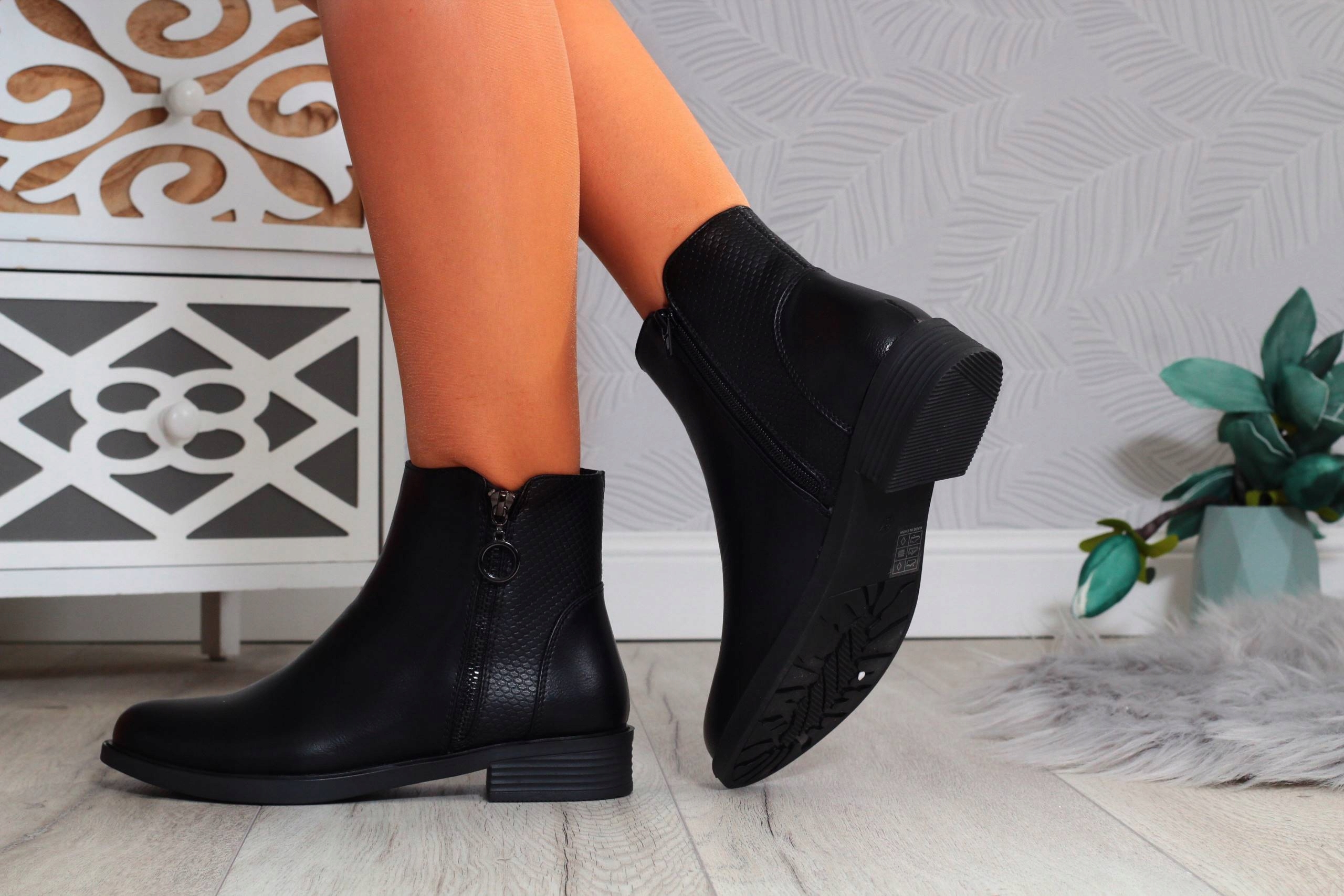 Гладкие черные женские ботильоны на декоративной молнии. ❤Имеют деликатную изоляцию. Идеально подходит для осени или весны.? Застегивается на молнию. 🔥 Устойчивая плоская подошва, хорошо амортизирующая ногу. Последняя коллекция 2022❗