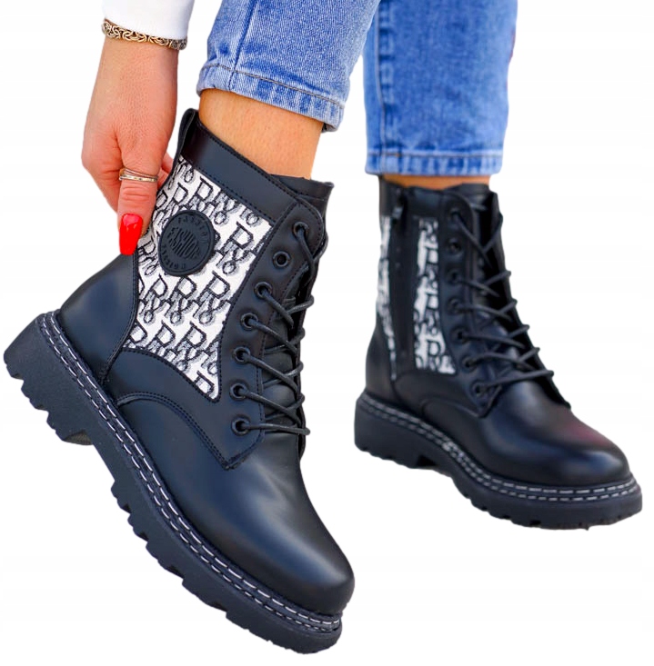 Модные ботинки на толстой подошве в мотоциклетном стиле.Ботинки выполнены из качественной экокожи, подошва из материала, имитирующего резину.Принт на верху придает обуви неповторимый вид