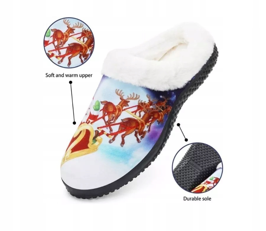 ЗИМНИЕ РОЖДЕСТВЕНСКИЕ ТАПОЧКИ УНИСЕКС ЖЕНСКИЕ МУЖСКИЕ, САНТА-КЛАУС, ТЕМНО-СИНИЕ, размер 41