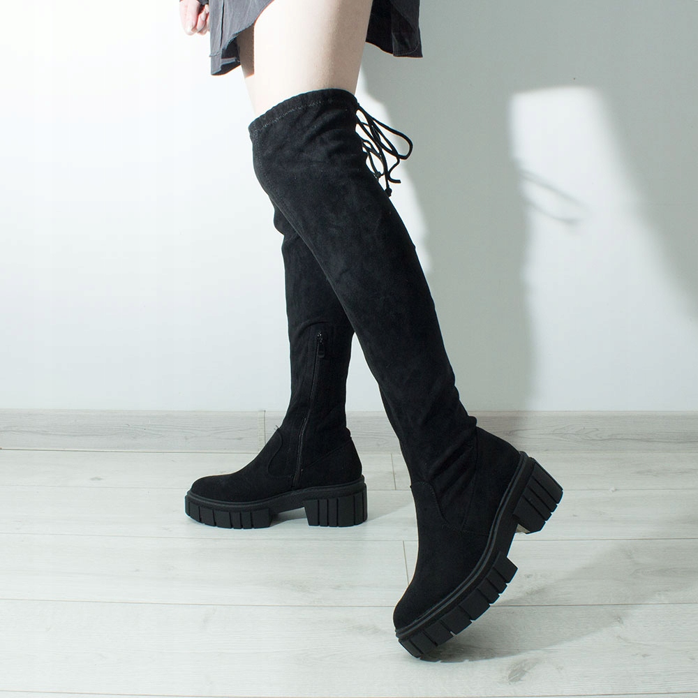 ЖІНОЧІ ЧОРНІ ЗАМШЕВІ ЧОБОТИНКИ НА ПЛАТФОРМІ