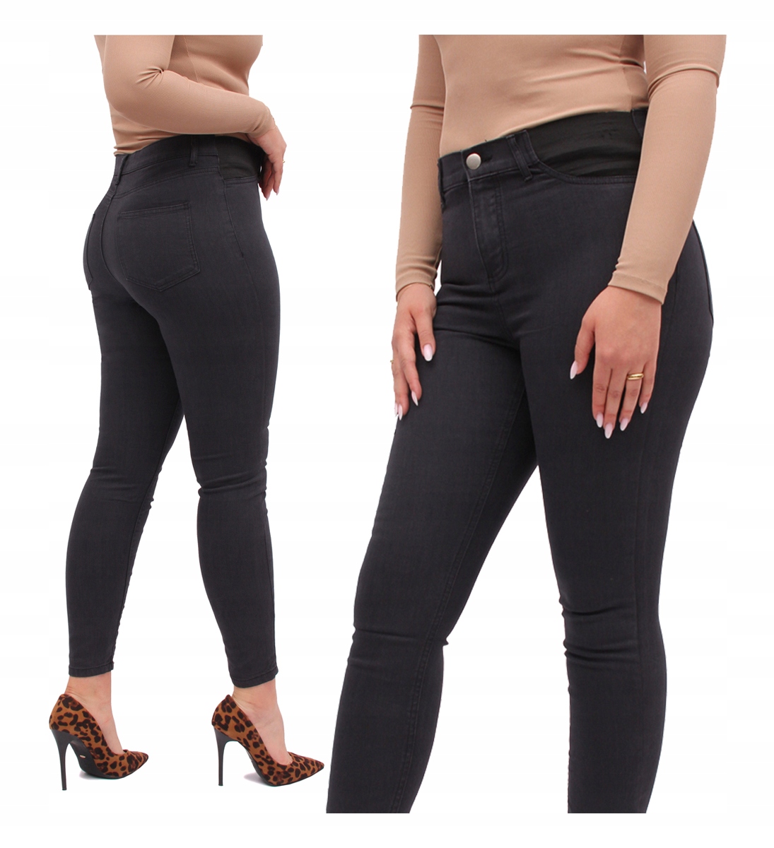 - Джинсы-скинни классического кроя с завышенной талией, которая оптически стройнит фигуру.