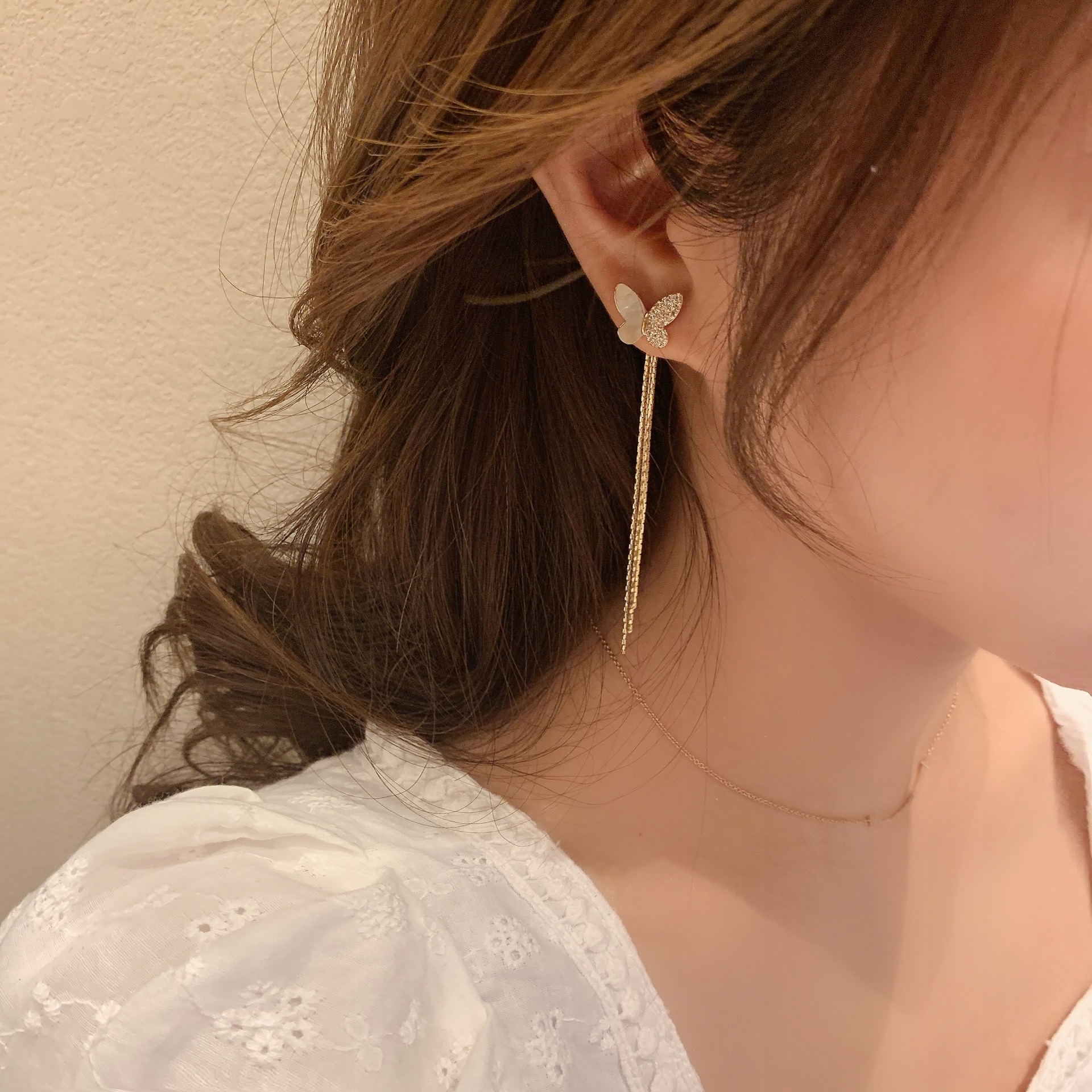Жіночі довгі золоті сережки-гвоздики метелики