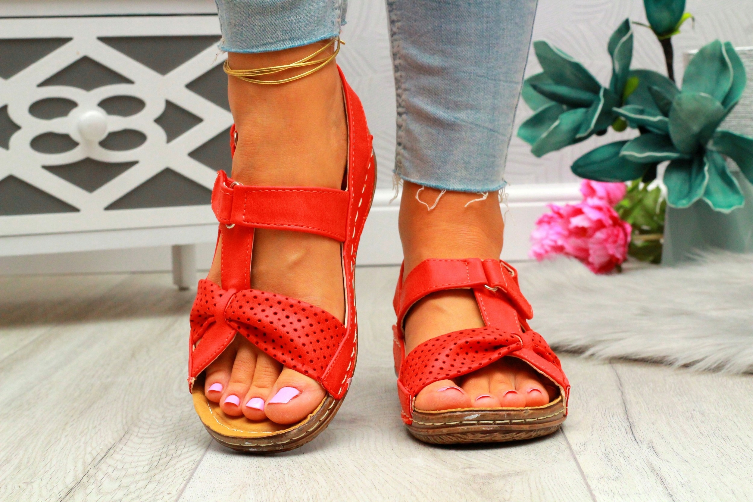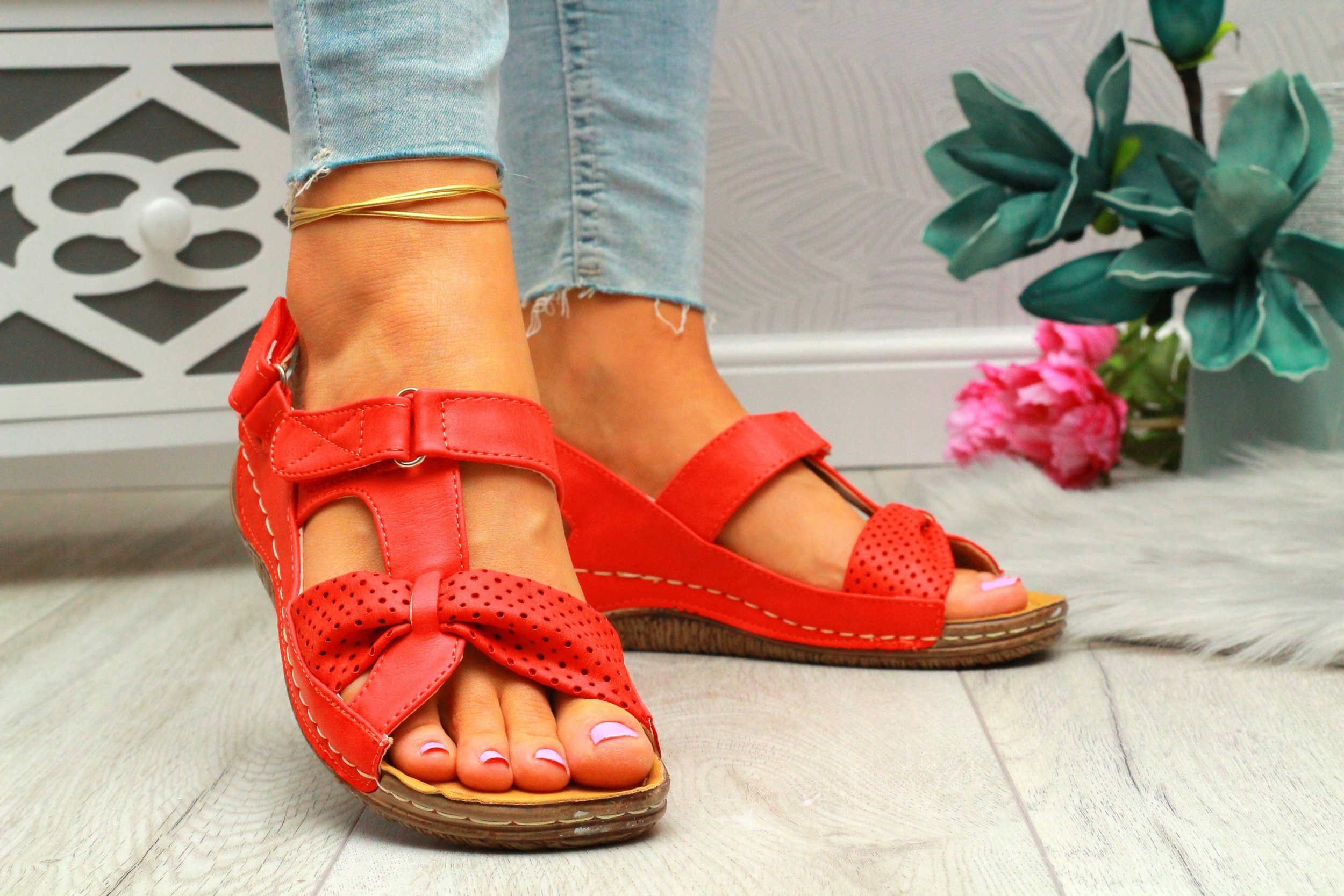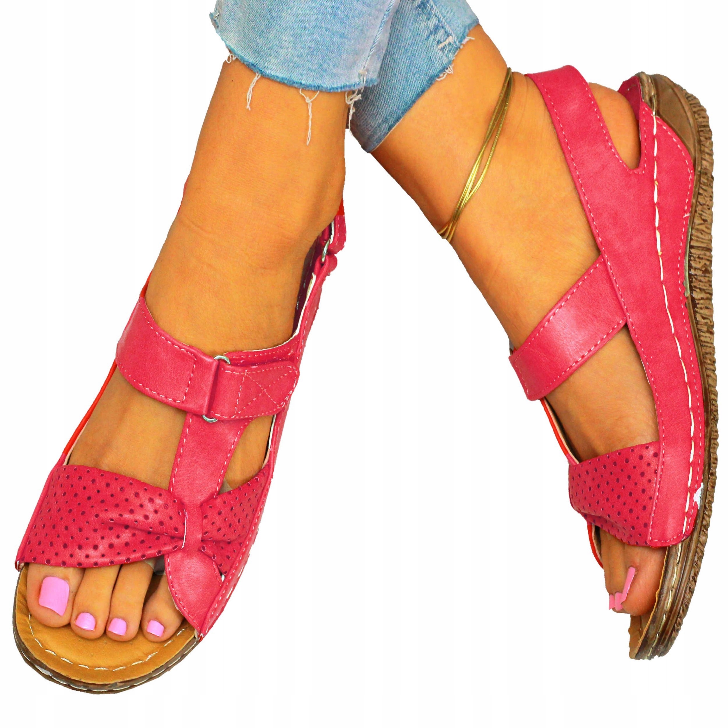 Женские красные босоножки на толстой подошве. Удобная профилированная стелька делает их идеальными для повседневного использования. Простой дизайн подойдет ко многим стилям. Застежка-липучка облегчает надевание ❗Пришитая подошва продлевает срок службы обуви.