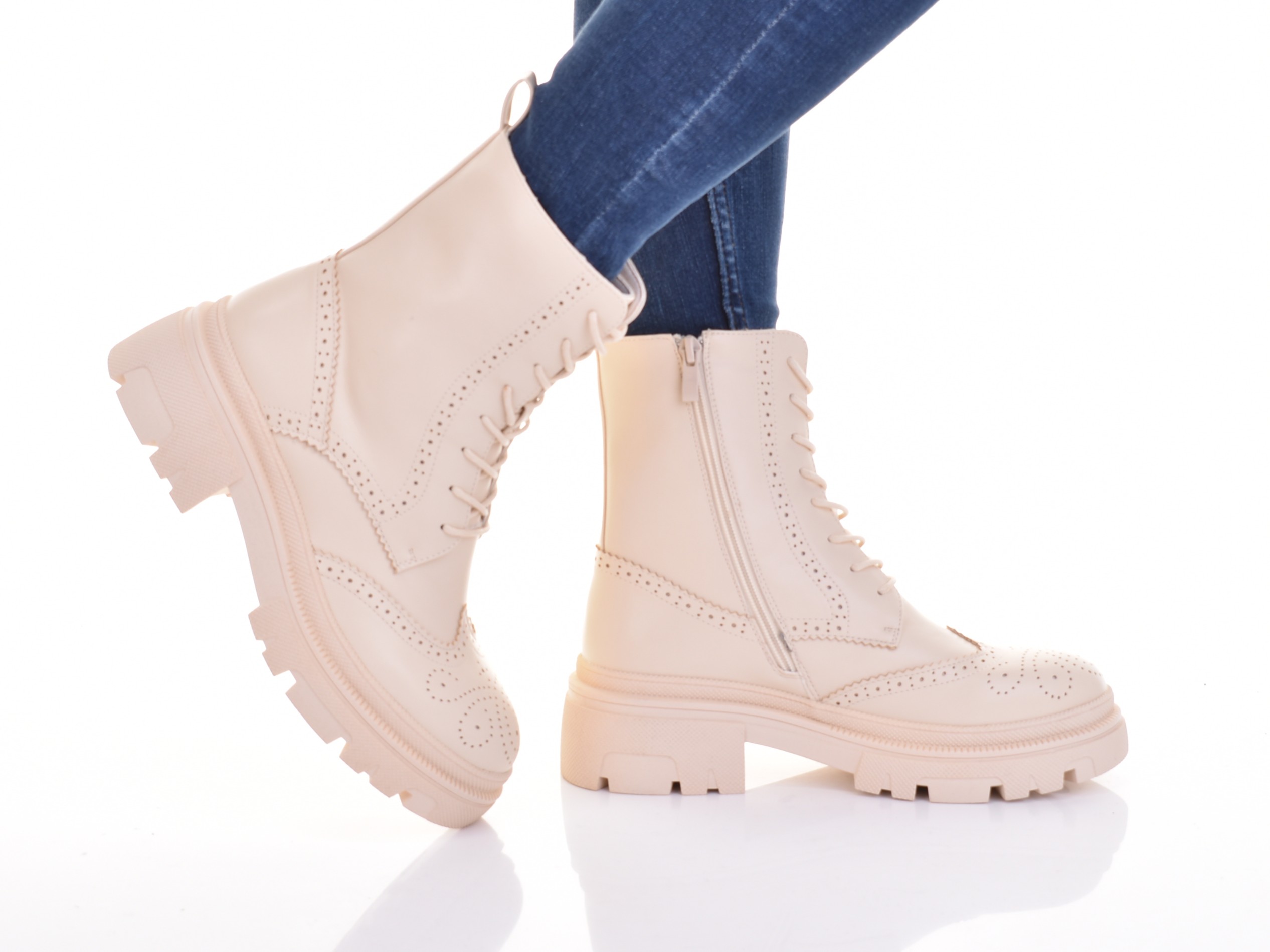 Женские изолированные ботинки на платформе, бежевые кожаные ловки