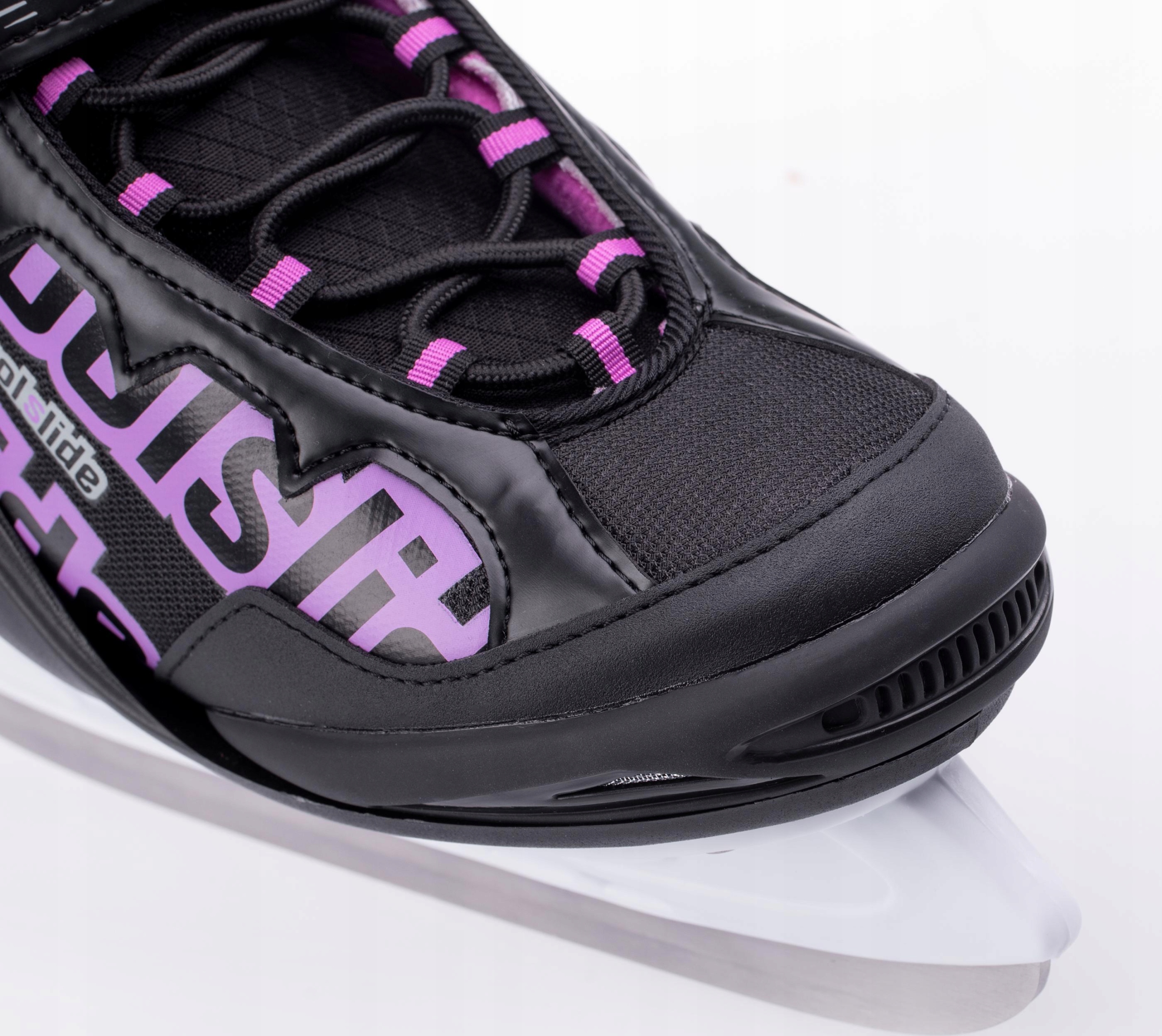 Полужесткая конструкция обуви обеспечивает адекватную поддержку лодыжки, а удобное сочетание классической шнуровки, липучки и пряжки обеспечивает точную регулировку. Мягкая утепленная бархатная подкладка закрывает стопу и обеспечивает приятное тепло даже при длительном нахождении на льду. Полозья из нержавеющей стали и защита носка обеспечивают долговечность и защиту.