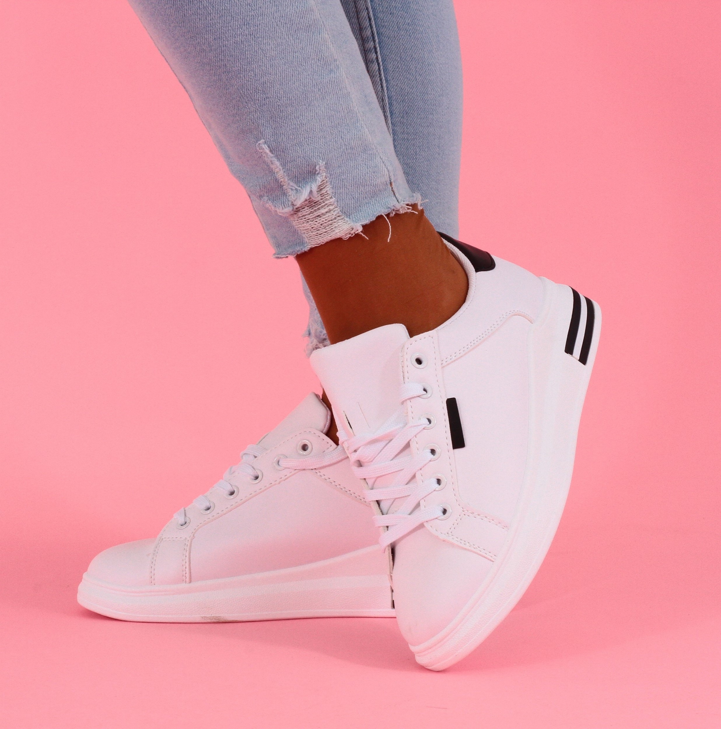 Женские белые спортивные туфли с черными элементами на плоской подошве. ❤ Изготовлен из качественных материалов. Они подойдут как повседневная, так и спортивная обувь. Кроссовки легкие и обеспечивают удобство и комфорт использования. Подошва устойчива и хорошо амортизирует ногу.Модный, неподвластный времени дизайн идеально подойдет ко многим стилям! На ноге смотрится хорошо. 💯