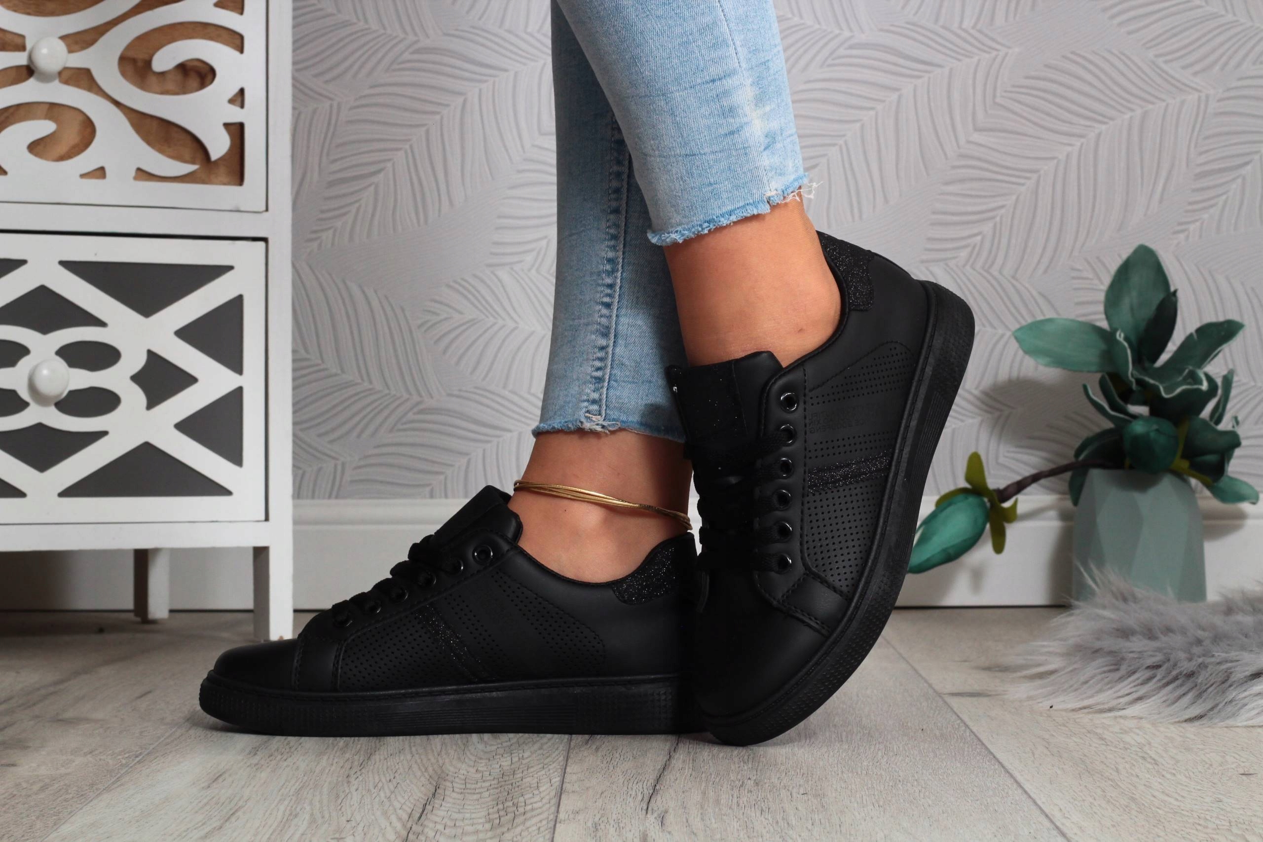 Женские черные спортивные туфли на плоской подошве. ❤ Изготовлен из качественных материалов. Они подойдут как повседневная, так и спортивная обувь. Кроссовки легкие и обеспечивают удобство и комфорт использования. Подошва устойчива и хорошо амортизирует ногу.Модный, неподвластный времени дизайн идеально подойдет ко многим стилям! На ноге смотрится хорошо. 💯