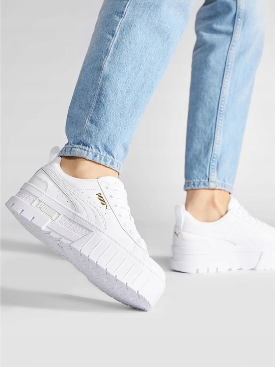 - Женская обувь Puma Mayze Classic 40.5 Белые кожаные кроссовки на платформе < /ul>
