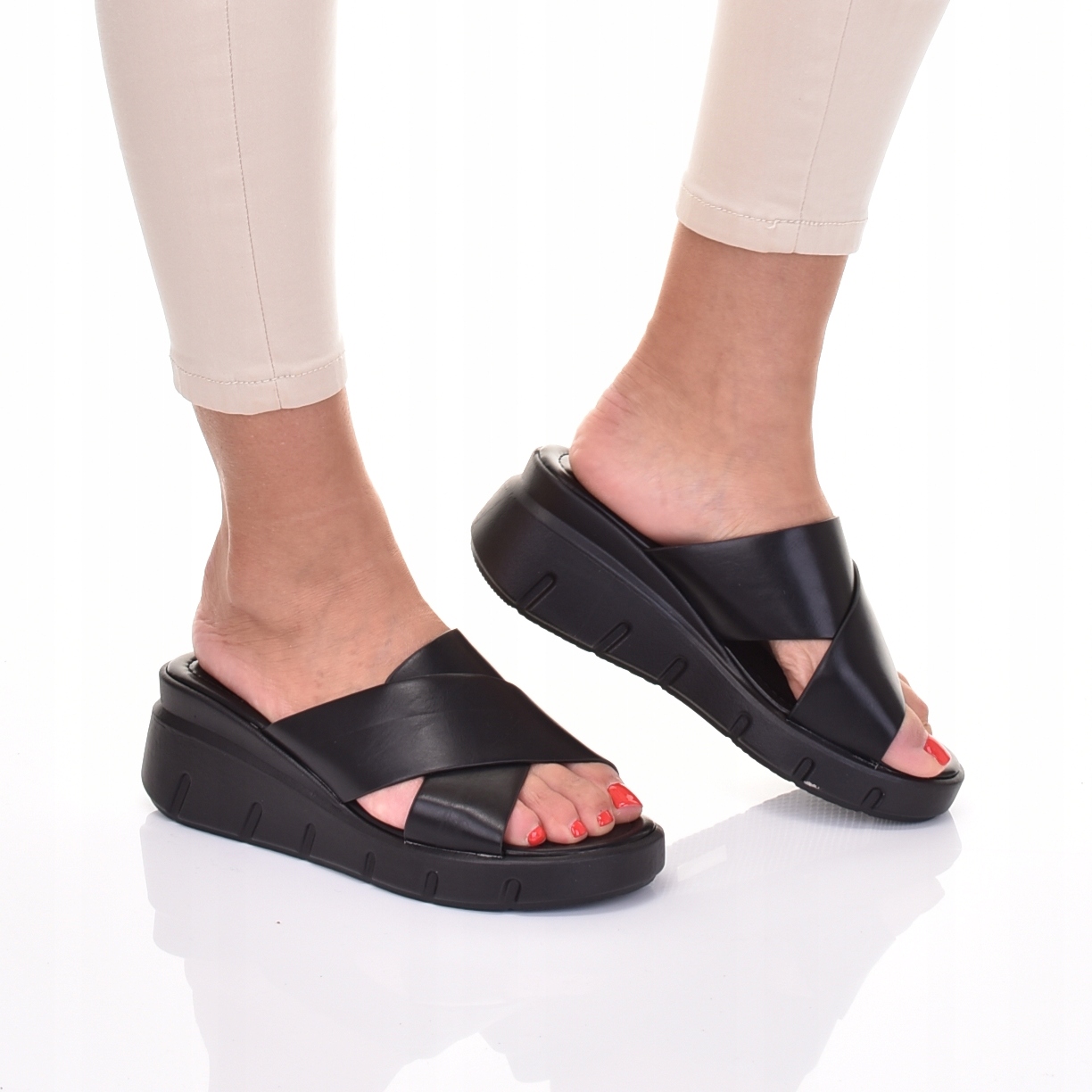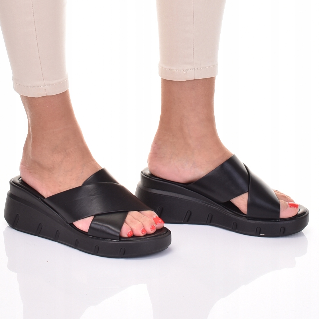 Женские элегантные черные шлепанцы — идеальный выбор в качестве повседневной или рабочей обуви.