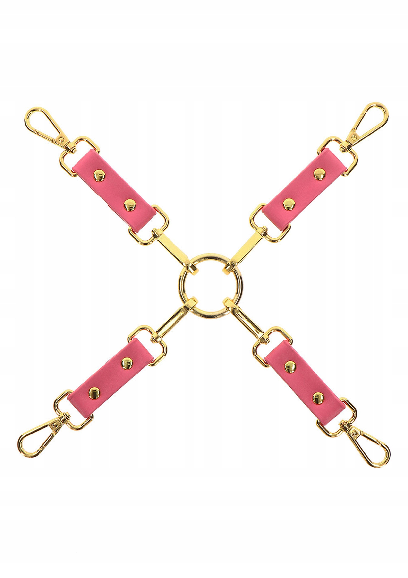 Изготовлен из розовой веганской кожи и украшенный золотыми деталями металлов, этот аксессуар источает изысканность