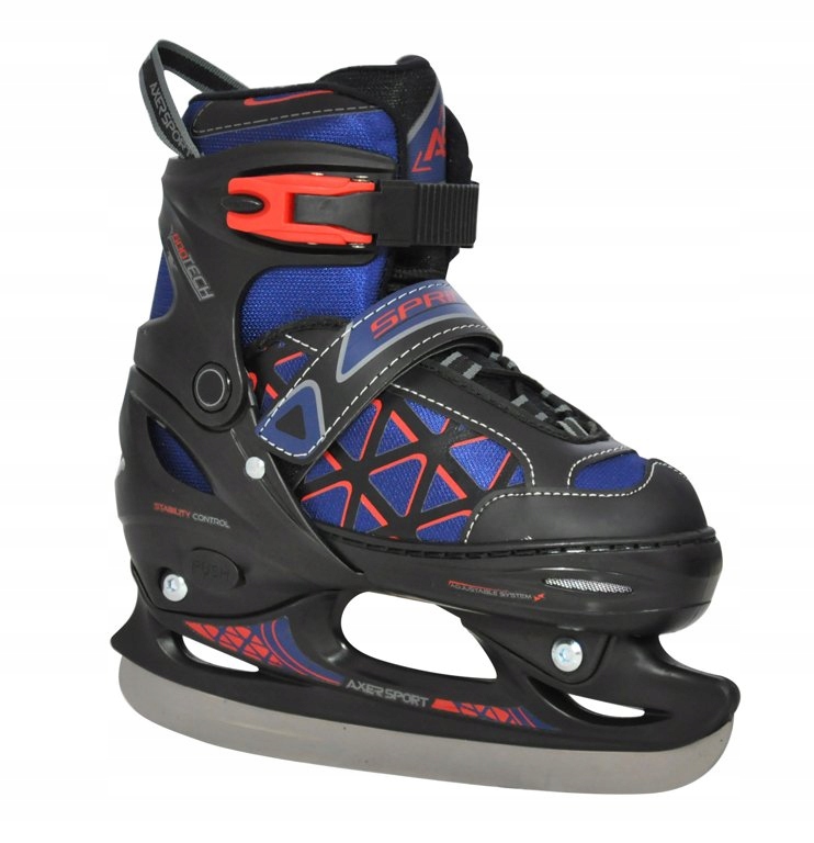 AXER SPRING — это чистое удовольствие от вождения. Благодаря возможности перемещения дополнительного колеса на заднюю ось роликовые коньки функционально трансформируются в роликовые коньки. Данное решение поможет самым юным фигуристам сделать первые шаги в этом виде спорта. В свою очередь, установка дополнительного колеса на переднюю ось превращает изделие в роликовые коньки. Роликовые коньки оснащены специальными алюминиевыми полозьями и тормозом, что обеспечивает безопасность во время катания. В свою очередь, колеса и подшипники класса ABEC7 позволяют снизить сопротивление качению, то есть ускорить езду.