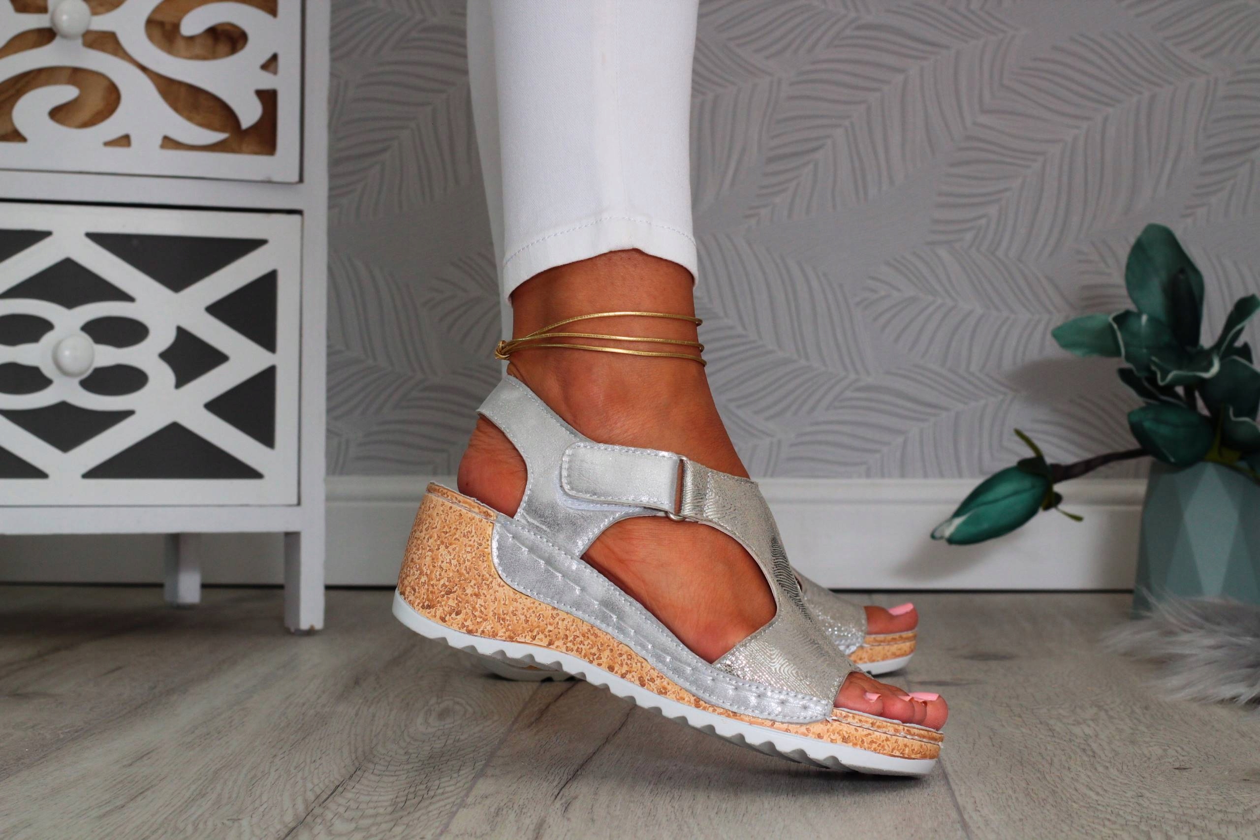 ХИТ! Женские серебряные босоножки на танкетке, легкие и удобные.