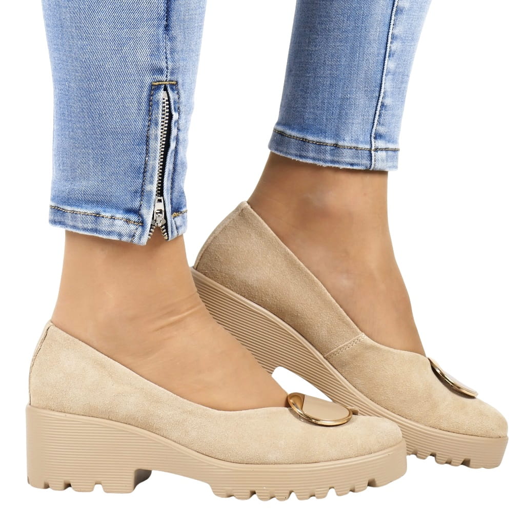 ЖІНОЧІ ШКІРЯНЕ ВЗУТТЯ З ДЕКОРАЦІЄЮ, КОМФОРТНЕ ВЗУТТЯ НА ЩОДЕН, БЕЖЕВА ЗАМША