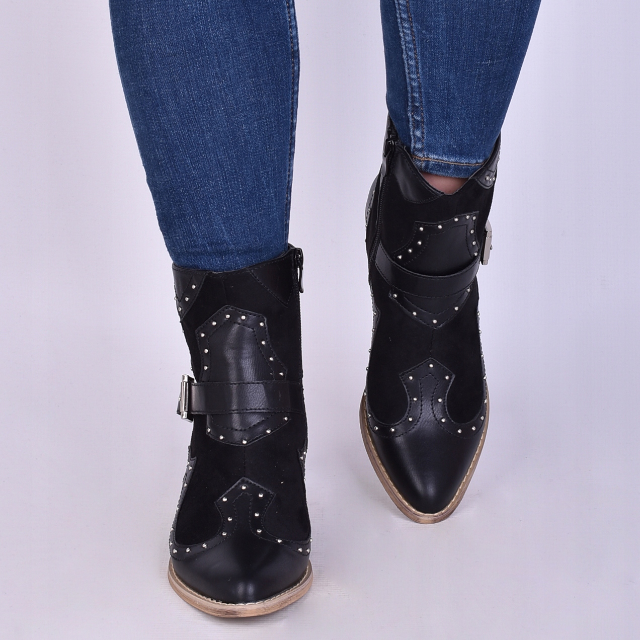 ЖІНОЧІ ШКІРЯНІ ЧОБІТКИ З КОВБОЙСЬКОЮ ПРЯЖКОЮ НА СТІПЦІ