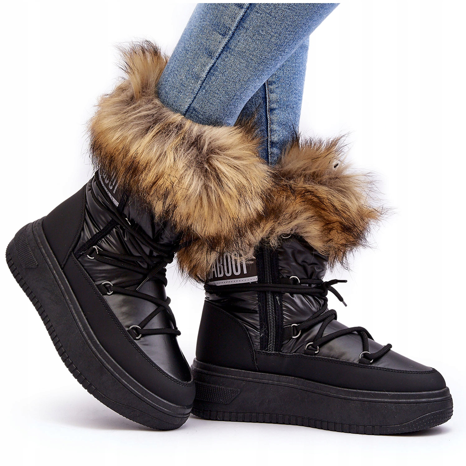 ЖІНОЧІ СНОУБОТИНКИ НА ХУТРЯНІЙ ПЛАТФОРМІ, ЧОРНІ 38