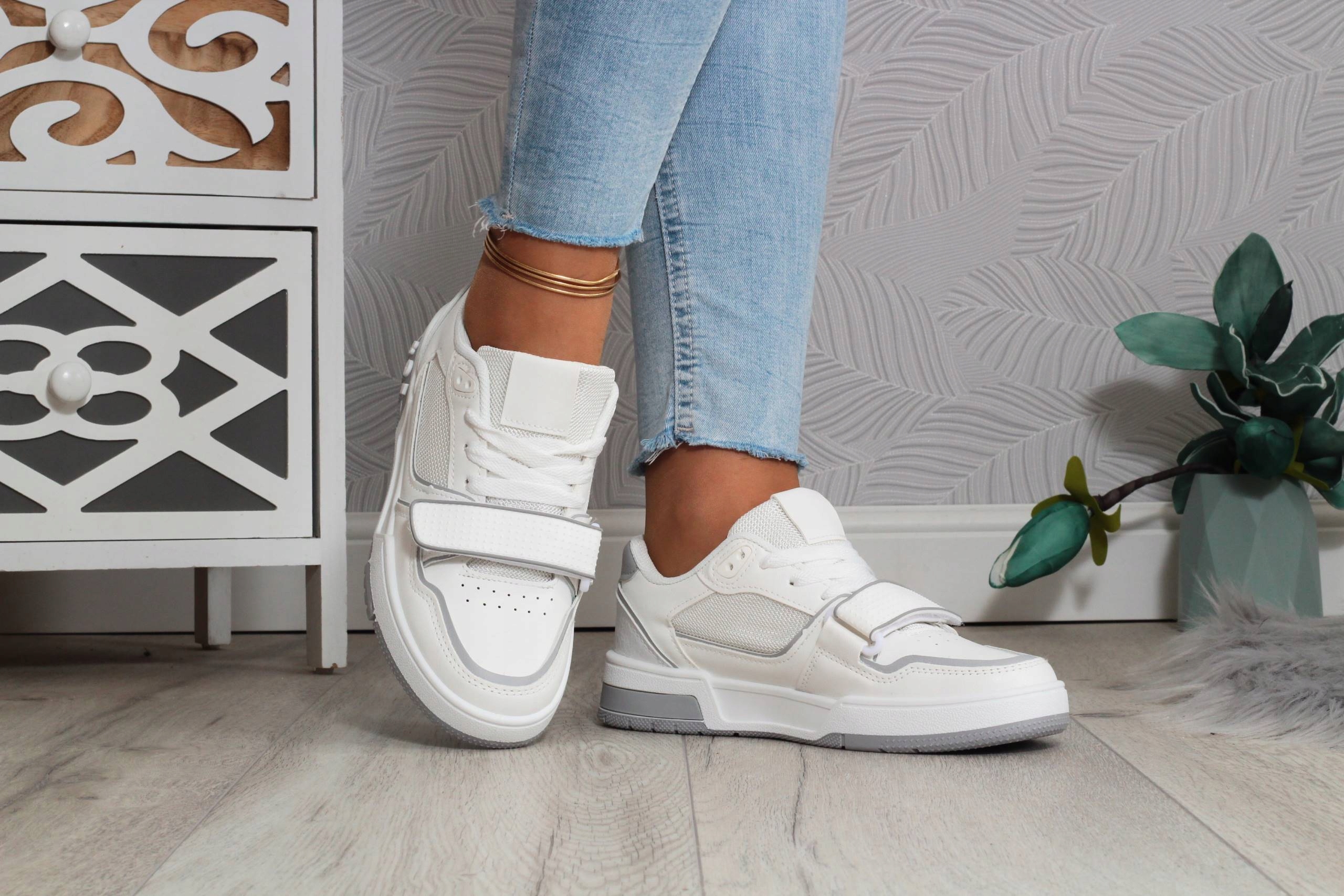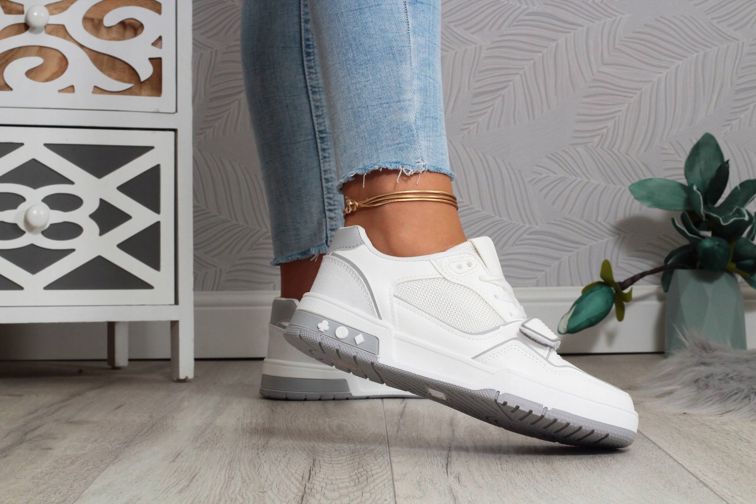 Женская спортивная обувь белого цвета с серыми элементами. 🖤 Модель на шнуровке с застежкой-липучкой. Изготовлен из материалов хорошего качества. Они подойдут как повседневная, так и спортивная обувь.😍 Кроссовки легкие, обеспечивают удобство и комфорт использования. Подошва устойчивая и хорошо амортизирует ногу. Модный крой из последней коллекции 2022 года идеально подойдет ко многим стилям! На ноге смотрится хорошо. 💯