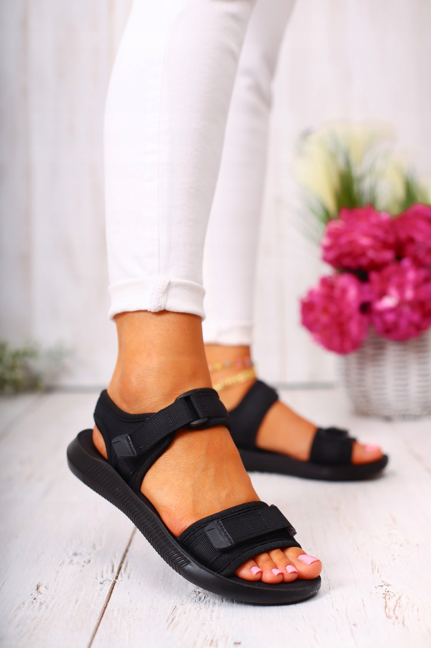 Женские сандалии на толстой подошве, застегивающейся на липучку, адаптирующуюся к ноге. Удобная профилированная стелька делает их идеальными для повседневного использования. Простой черный дизайн подойдет ко многим стилям.❗