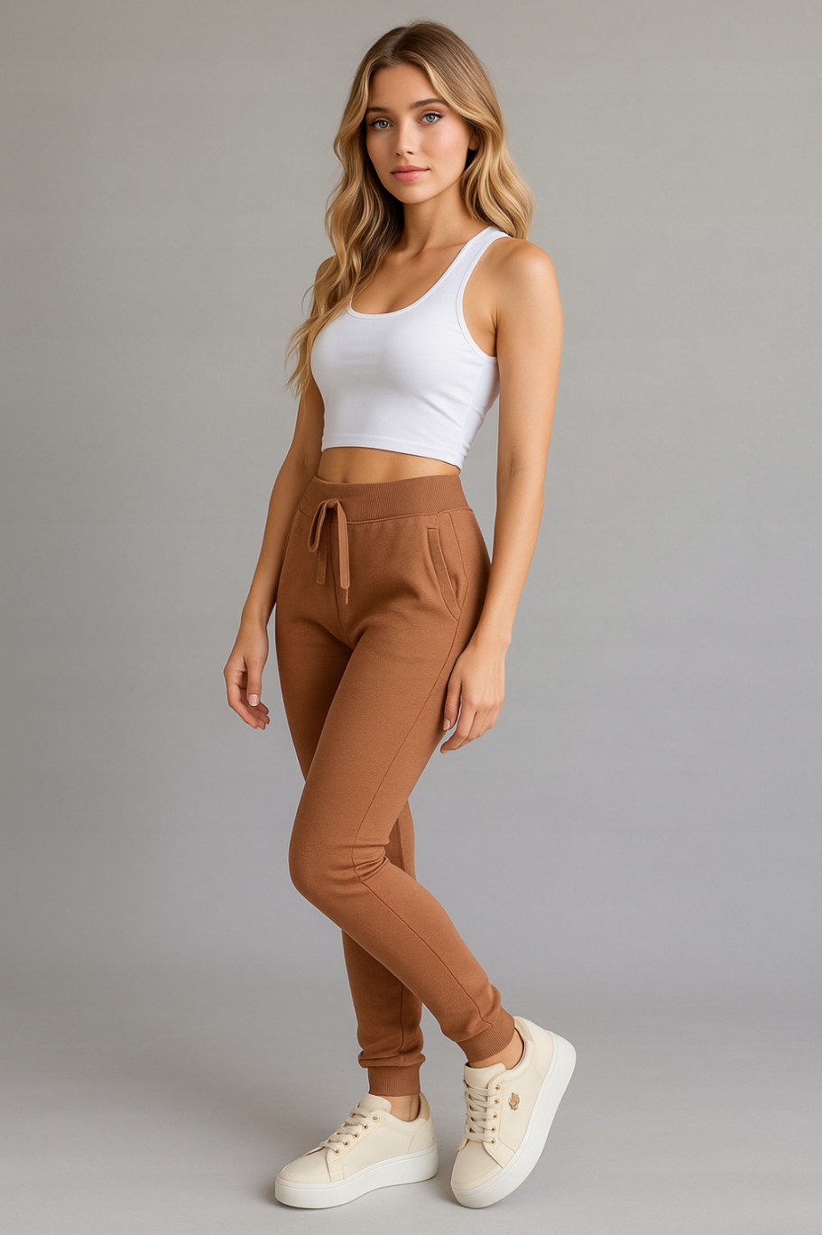 СПОРТИВНЫЕ БРЮКИ ЖЕНСКИЕ – КОРИЧНЕВЫЕ – ПРИГЛАЖЕННЫЕ – УЗКИЕ НОГИ XL