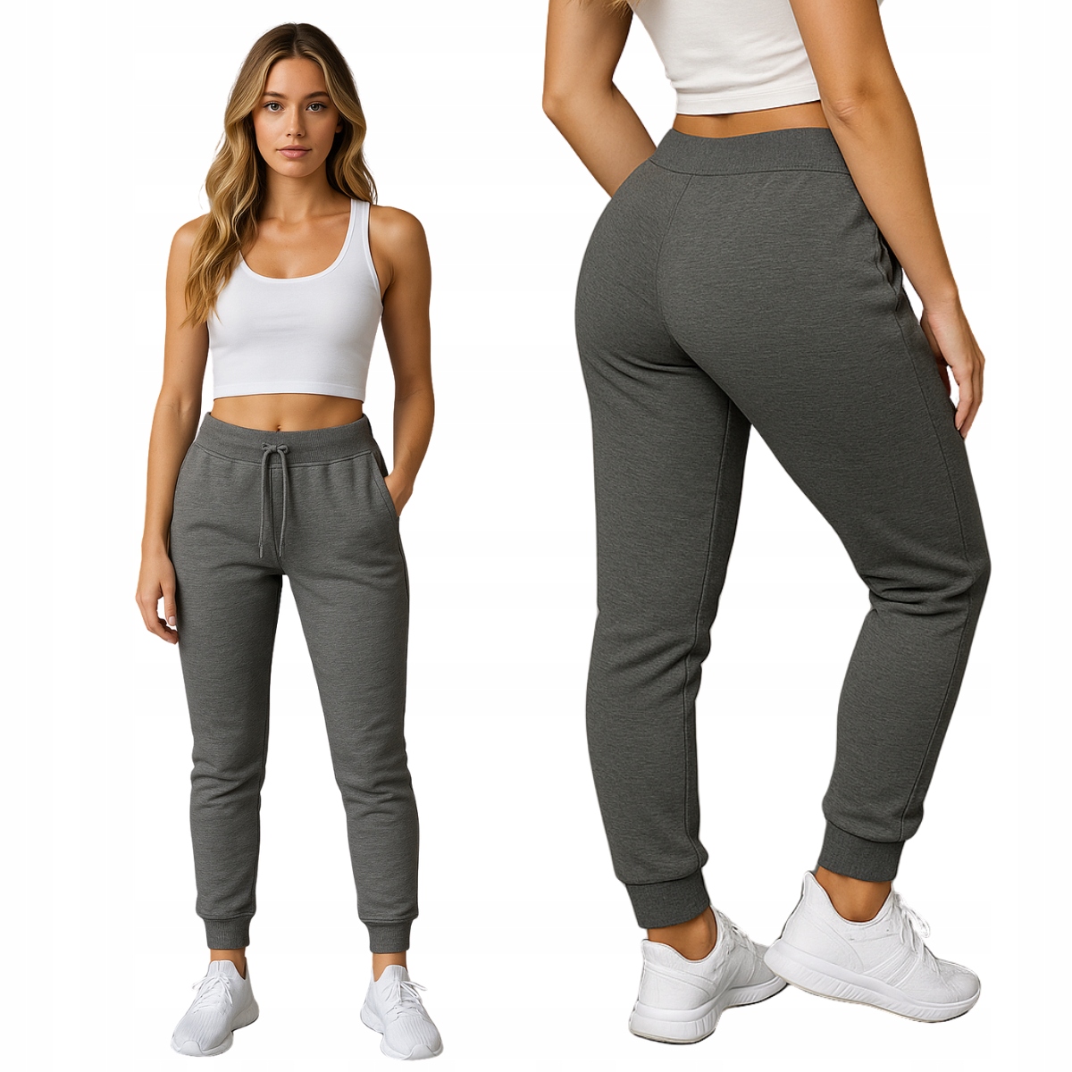 СПОРТИВНЫЕ БРЮКИ ЖЕНСКИЕ - ТЕМНО-СЕРЫЕ, ПРИГЛАЖЕННЫЕ, УЗКИЕ НОГИ S