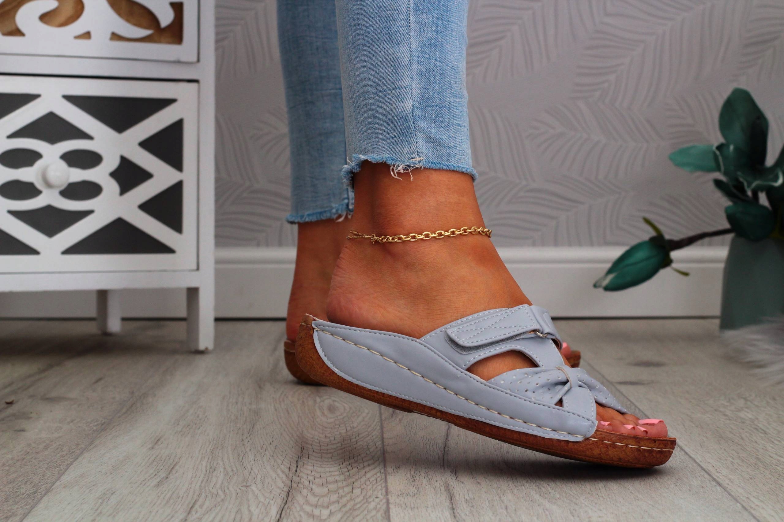 Женские серые шлепанцы на нежной танкетке с застежкой-липучкой. Профилированная стелька из натуральной кожи. Прошитая подошва обеспечивает более длительный срок службы. Простой дизайн подходит для многих стилей.