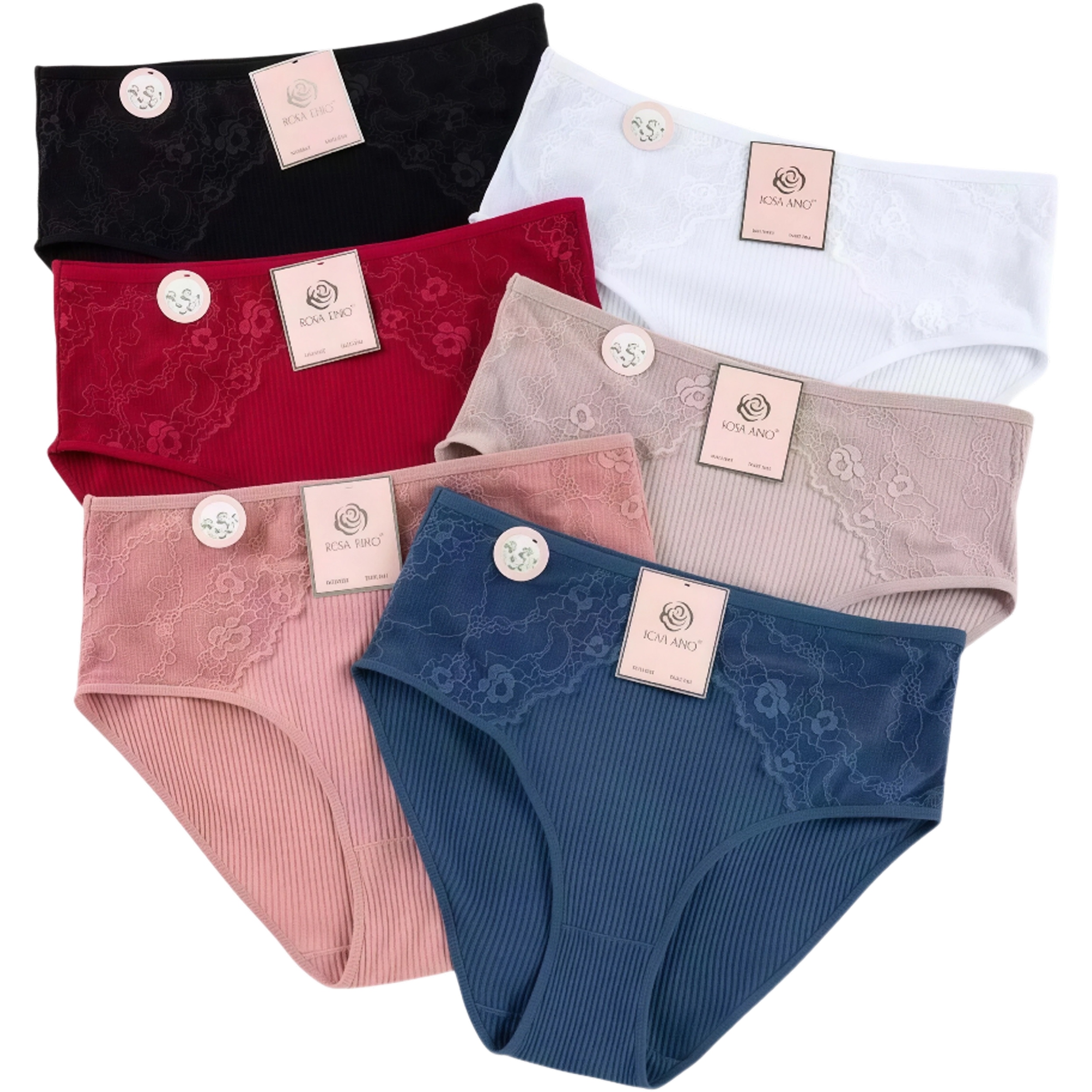 6 ЖЕНСКИХ ТРУСОВ БОЛЬШОГО РАЗМЕРА, ХЛОПКОВОЕ КРУЖЕВО, ORIGINAL ROSA 2XL