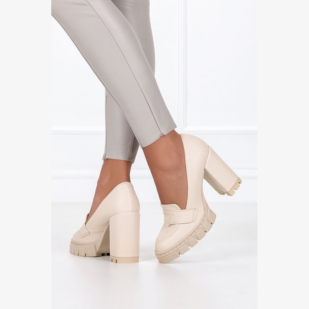 Бежевые лоферы на каблуке Casu 011-2