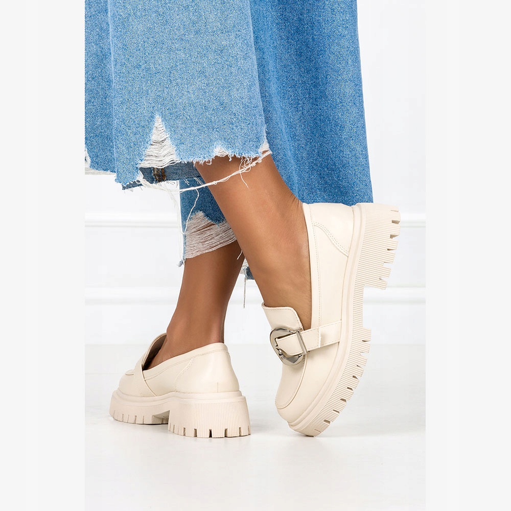 Бежевые женские мокасины модели G23X3-BE изготовлены из высококачественной экологической кожи, что гарантирует отличное качество, комфорт и прилегание к ноге. Это идеальный выбор для людей, которые ищут сочетание элегантности и комфорта в одном. Благодаря универсальному бежевому цвету они идеально сочетаются с одеждой самых разных стилей и цветов. Благодаря классическому дизайну их можно носить как с формальным, так и с более повседневным стилем. Дополнительным преимуществом является пряжка, расположенная сверху. Это тонкая деталь, которая придает обуви слегка авангардный характер, оставаясь при этом в рамках элегантности. Пряжка придает обуви неповторимый вид, привлекая внимание и выделяя ее среди других мокасин. Рифленая подошва – идеальное решение для людей, которые ценят комфорт и уверенность в своих шагах. Благодаря протекторам на подошве мокасины обеспечивают хорошее сцепление даже на мокрой или скользкой поверхности. Это особенно важно, если вам нужна обувь не только элегантная, но и практичная для повседневного ношения. Независимо от повода – будь то официальная встреча в офисе, свидание или прогулка по городу – эти туфли станут отличным дополнением вашего гардероба, подчеркнув ваш неповторимый стиль и обеспечив комфорт на протяжении всего дня. Ознакомьтесь с предложением на Casu!