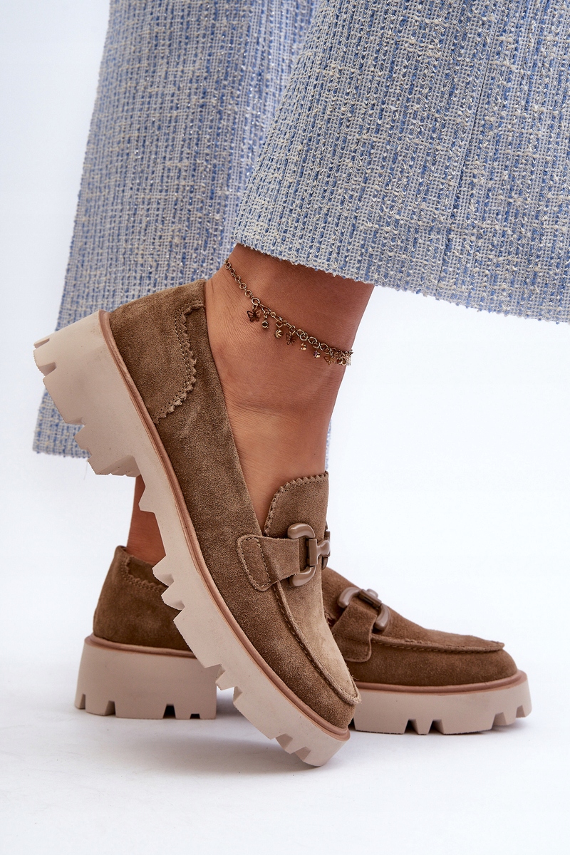 Женские мокасины из натуральной замши. Поставлены на плоский каблук. Дополнительный декоративный элемент спереди придает им неповторимый шарм, делая оригинальным дополнением любого стиля. Независимо от того, собираетесь ли вы на встречу с друзьями или на более официальное мероприятие, эти лоферы станут идеальным дополнением вашего образа, придав ему нотку утонченной элегантности. При выборе размера, пожалуйста, обратитесь к таблице размеров.
