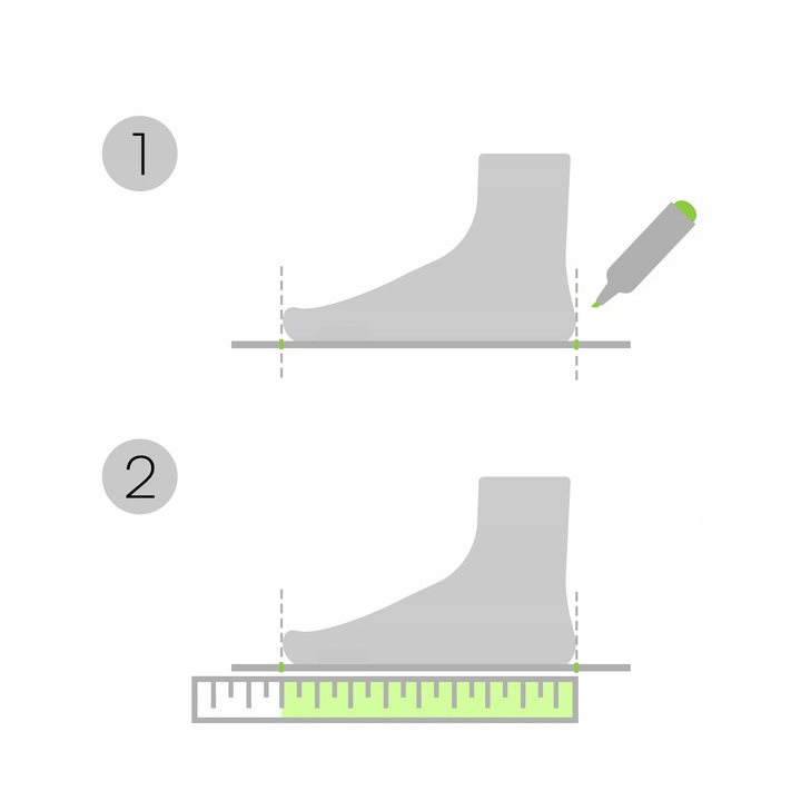 1. Поставьте ногу на лист бумаги и внимательно обведите ее длину.