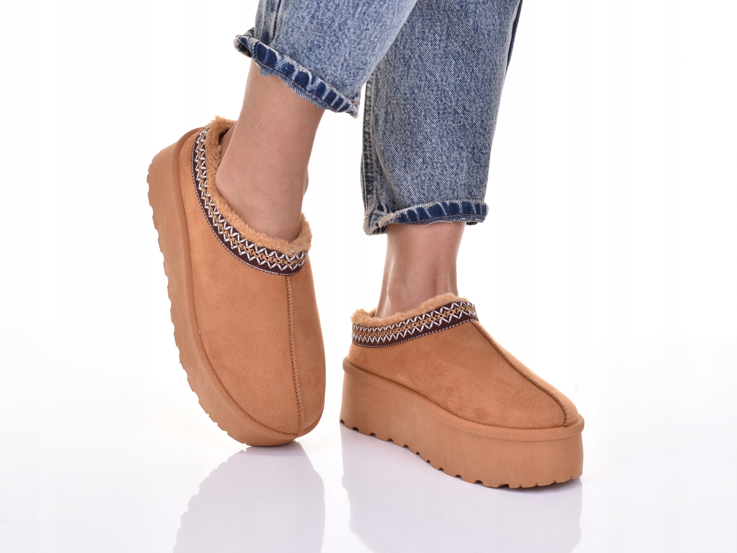 Внутренняя часть обуви утеплена мясистым, теплым и приятным мехом, что обеспечивает комфорт при носке.