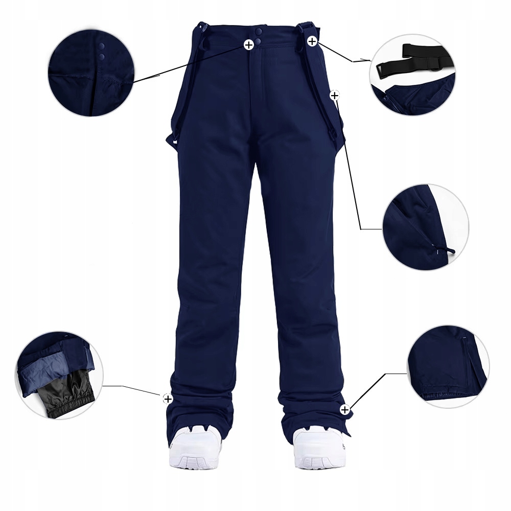Женские зимние лыжные штаны сноуборды Зимние темно -синие брекеты.