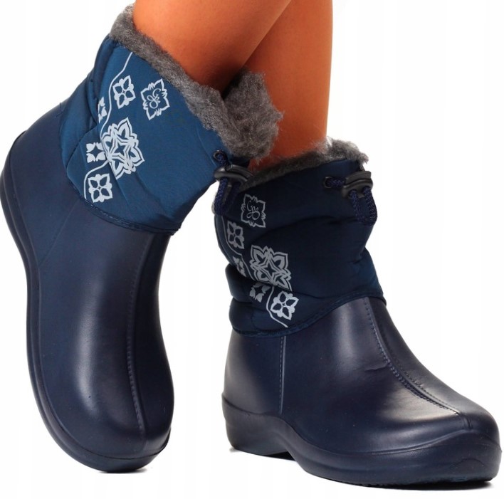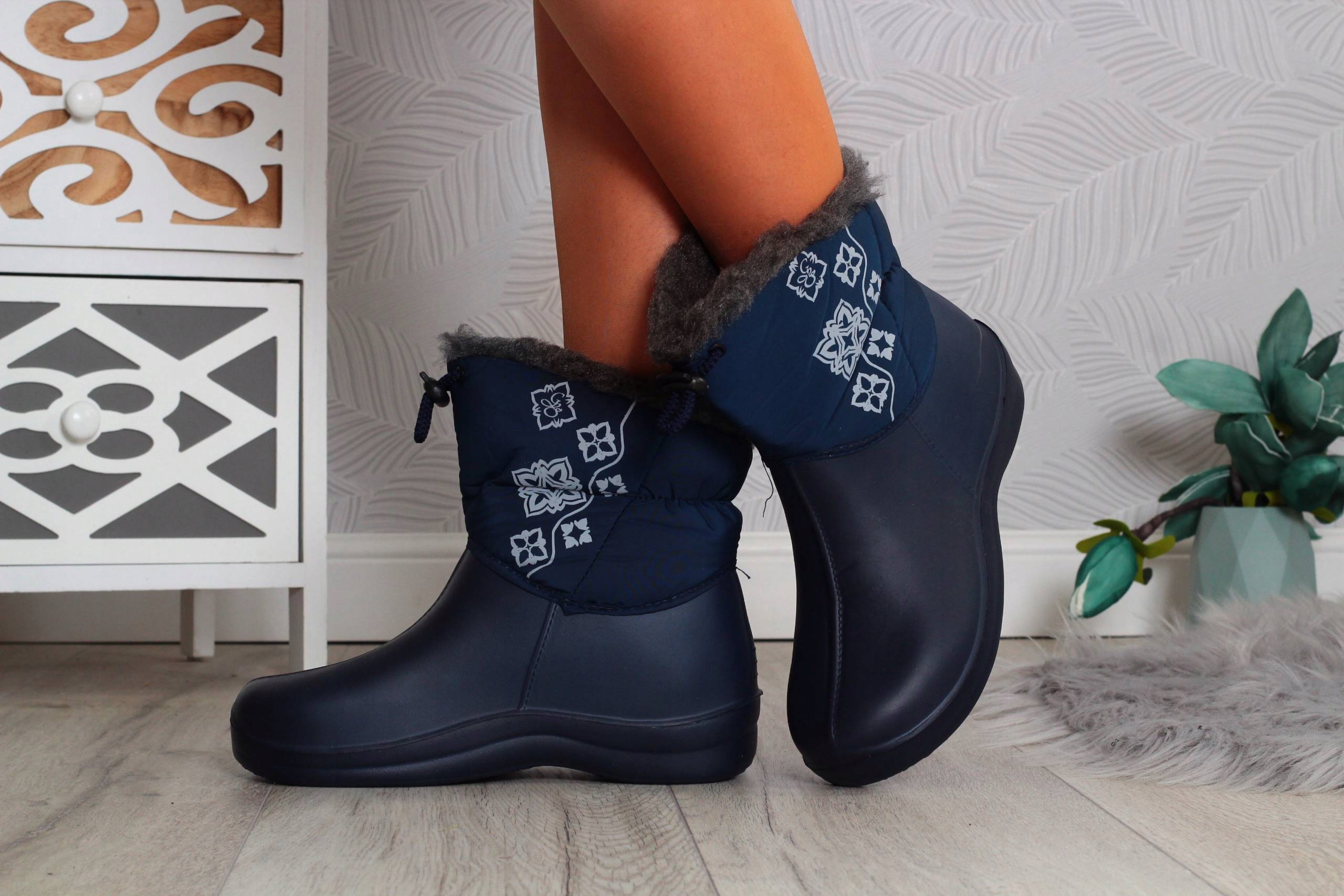 Женские зимние снегоступы темно-синего цвета. У них есть изоляция. ⭐ Имеют водонепроницаемую, прочную, толстую подошву из пеноматериала, изолирующую от холода.