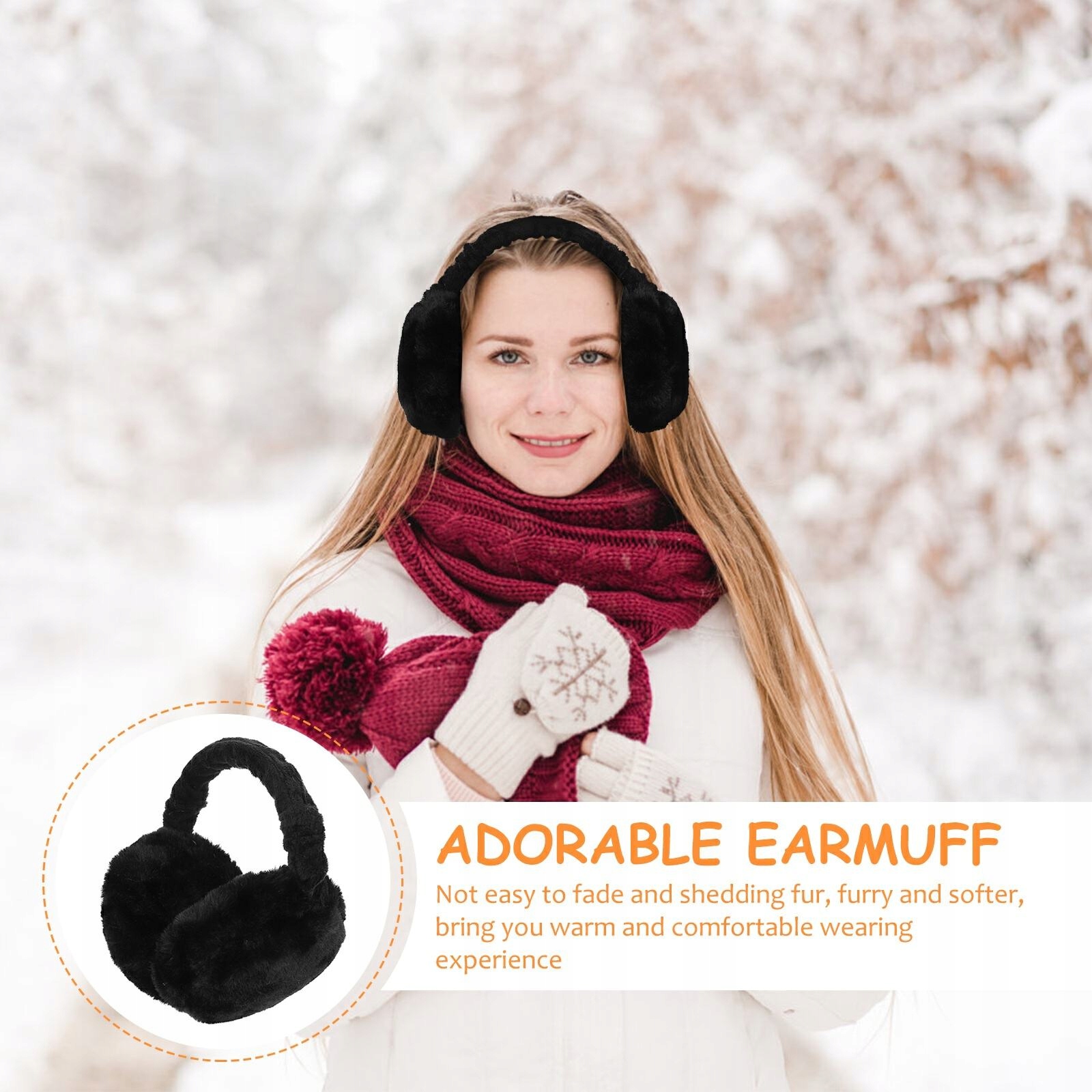 НАУШНИКИ ЖЕНСКИЕ ЗИМНИЕ, УТЕПЛЕННЫЕ, ПЛЮШЕВЫЕ, ТЕПЛЫЕ, СКЛАДНЫЕ МЕХОВЫЕ, ЧЕРНЫЕ
