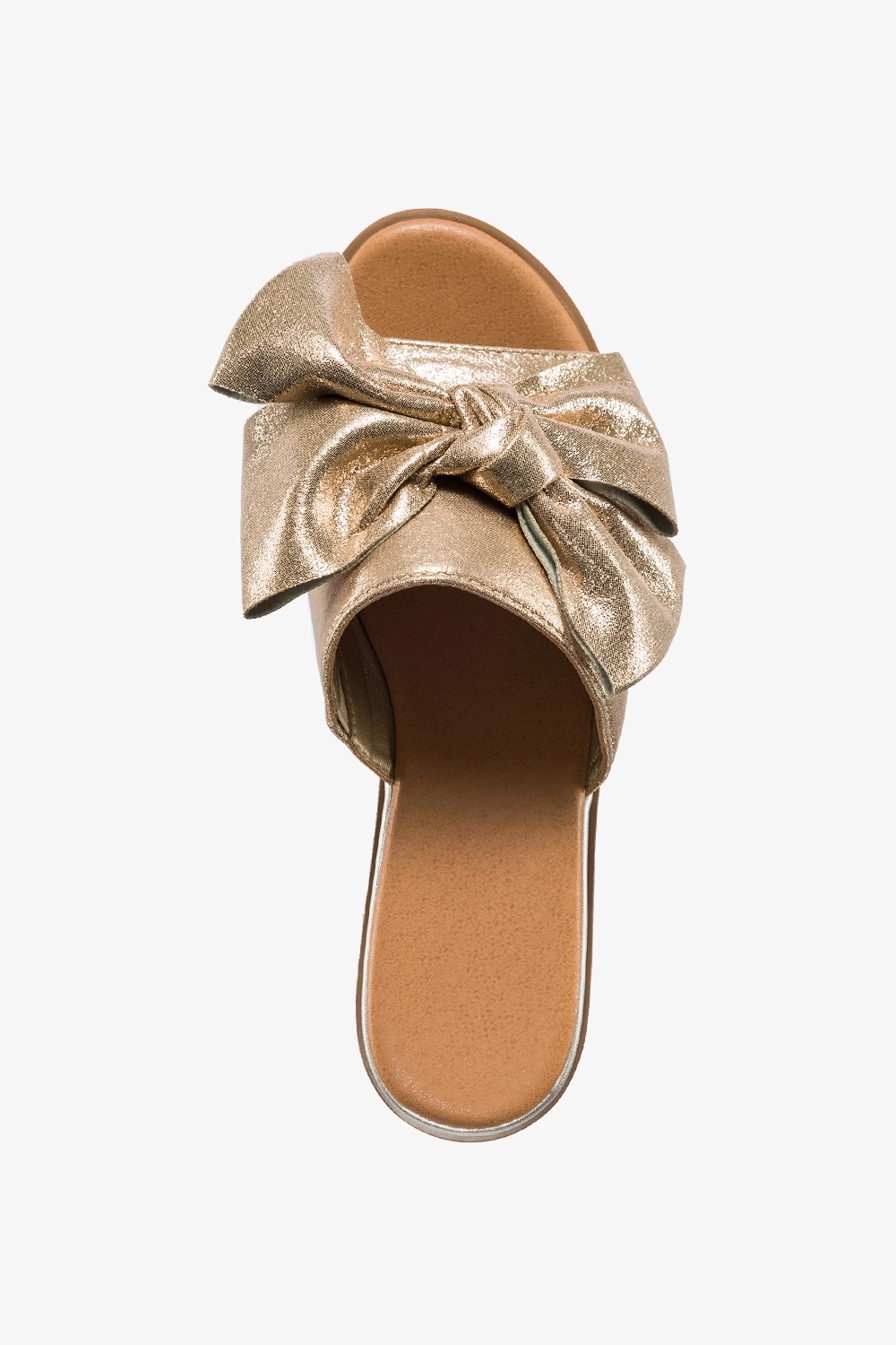 ЖІНОЧІ ЗОЛОТІ ТАПОЧКИ НА ПЛАТФОРМІ, МОДНІ, БЛИСКУЧИЙ БАНТ, СВІТЛІ, 39 р.