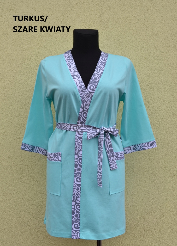 ХАЛАТ ЖЕНСКИЙ ОДНОНОМНЫЙ ТРИКОТАЖНЫЙ ХАЛАТ ВЫСОКОГО КАЧЕСТВА, ВЕС 170, ХЛОПОК BORBS 100%, ОДНОЦВЕТНЫЙ ХАЛАТ, ОТДЕЛЕННЫЙ АКСЕССУАРАМИ С ПРИНТАМИ НА ВЫБОР, ХАЛАТ, ЗАВЯЗАННЫЙ НА ТАЛИИ ПОЯСОМ, РУКАВ 3/4.