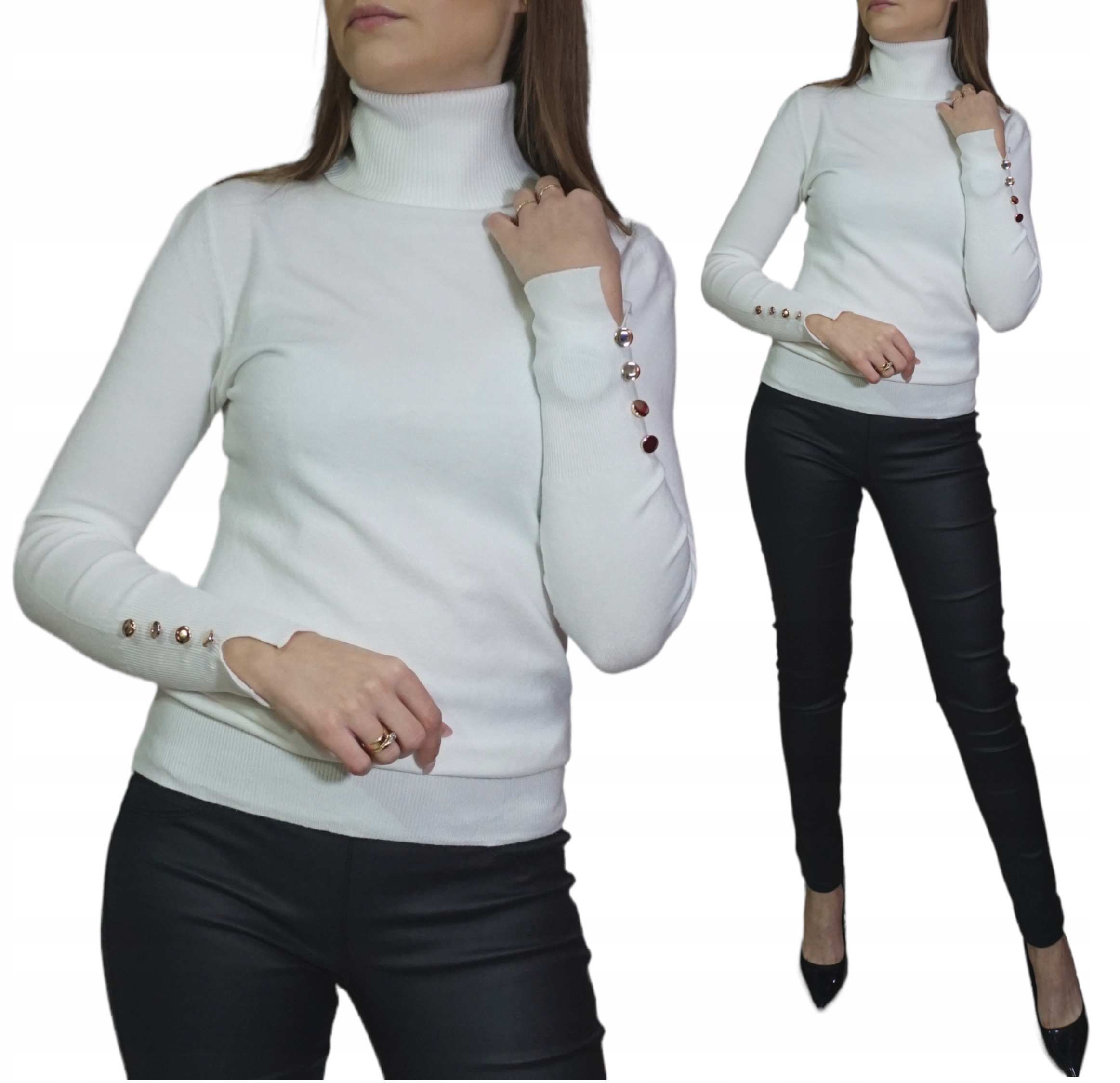 Красивая женская водолазка с пуговицами на рукавах. Свитер из теплого, приятного на ощупь материала. Эластичный материал тянется на несколько сантиметров.