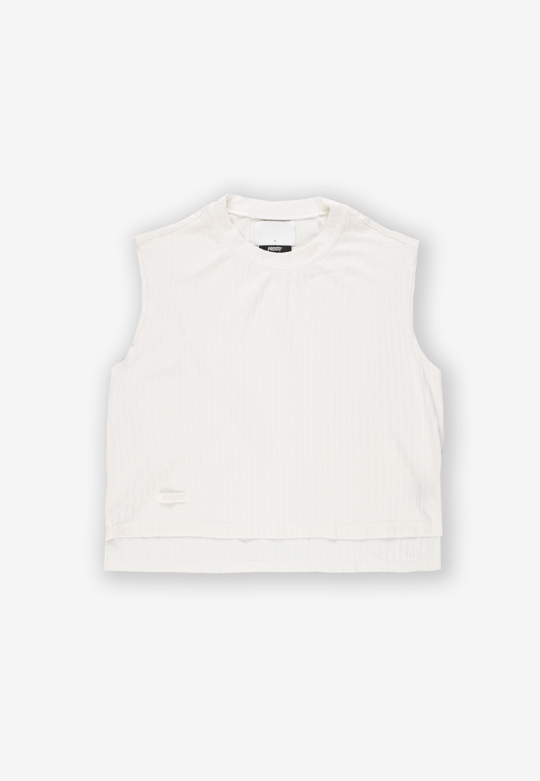 Топ Bamboo Off-White – женский топ из коллекции Prosto светлого кремового оттенка. Изготовлен из мягкой бамбуковой ткани с эластаном, легкий, слегка эластичный и приятный для кожи. Полупрозрачный материал с ребристой структурой тонко подчеркивает фигуру, обеспечивая при этом комфорт и воздухопроницаемость. Классический крой позволяет топу хорошо сидеть на теле и подходит как для повседневного, так и для более изысканного стиля. Все это дополняет минималистичная жаккардовая этикетка с логотипом «Просто».