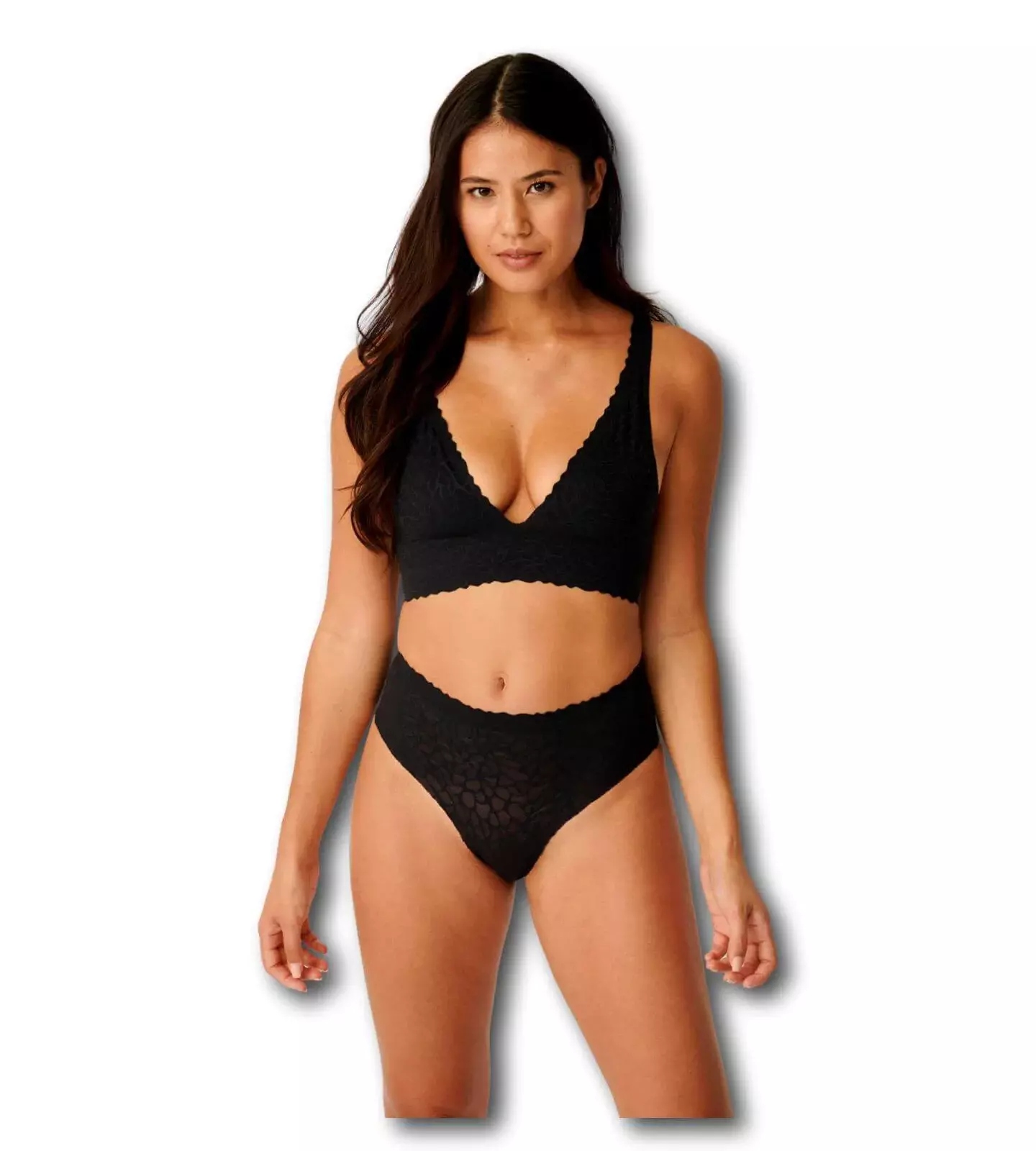 Цветовой код: 0004 - ЧЕРНЫЙ Черный цвет Серия: ZERO FEEL LACE от sloggi — бюстгальтер с V-образным вырезом и волнистой отделкой