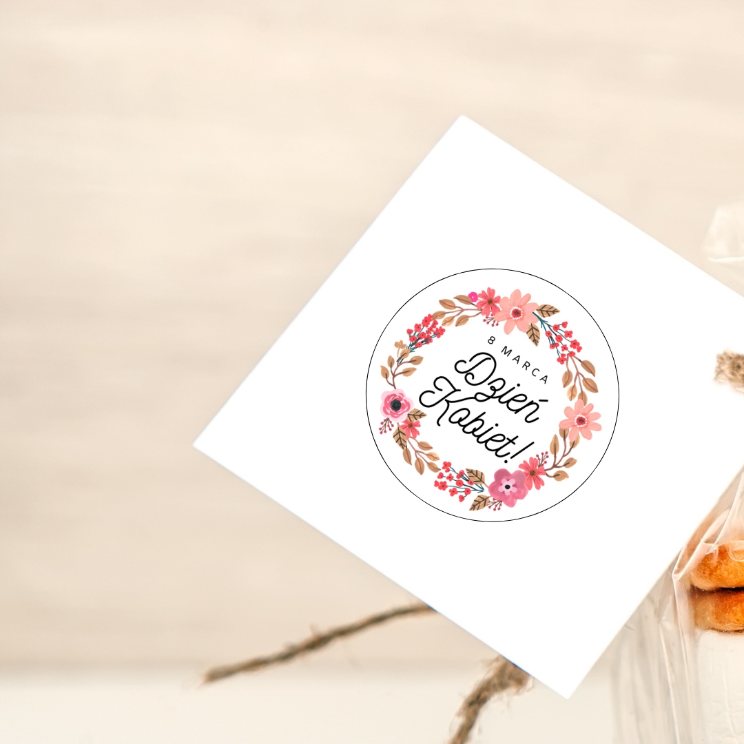 Женские наклейки с днем круглых цветов для упаковки 120 штук 4 см.