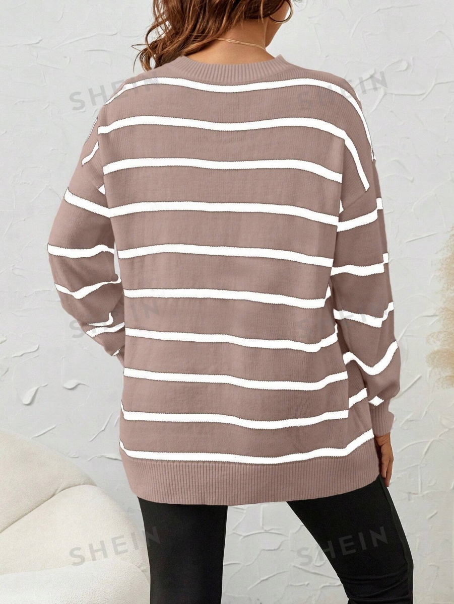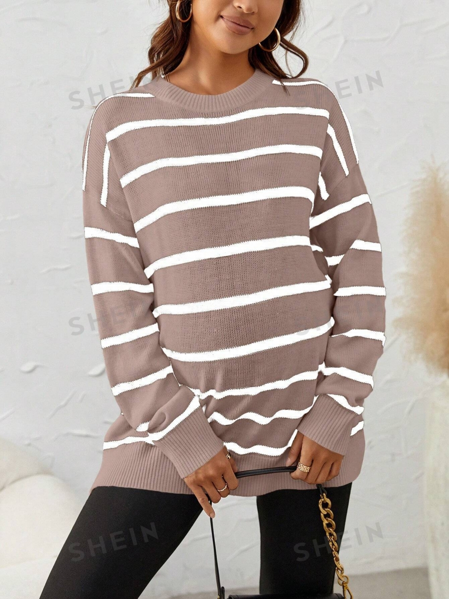 SHEIN ЖЕНСКИЙ ДЖЕМПЕР В ПОЛОСКУ ДЛЯ МАТЕРИАЛОВ РОЗОВЫЙ ПРОСТОЙ S 928