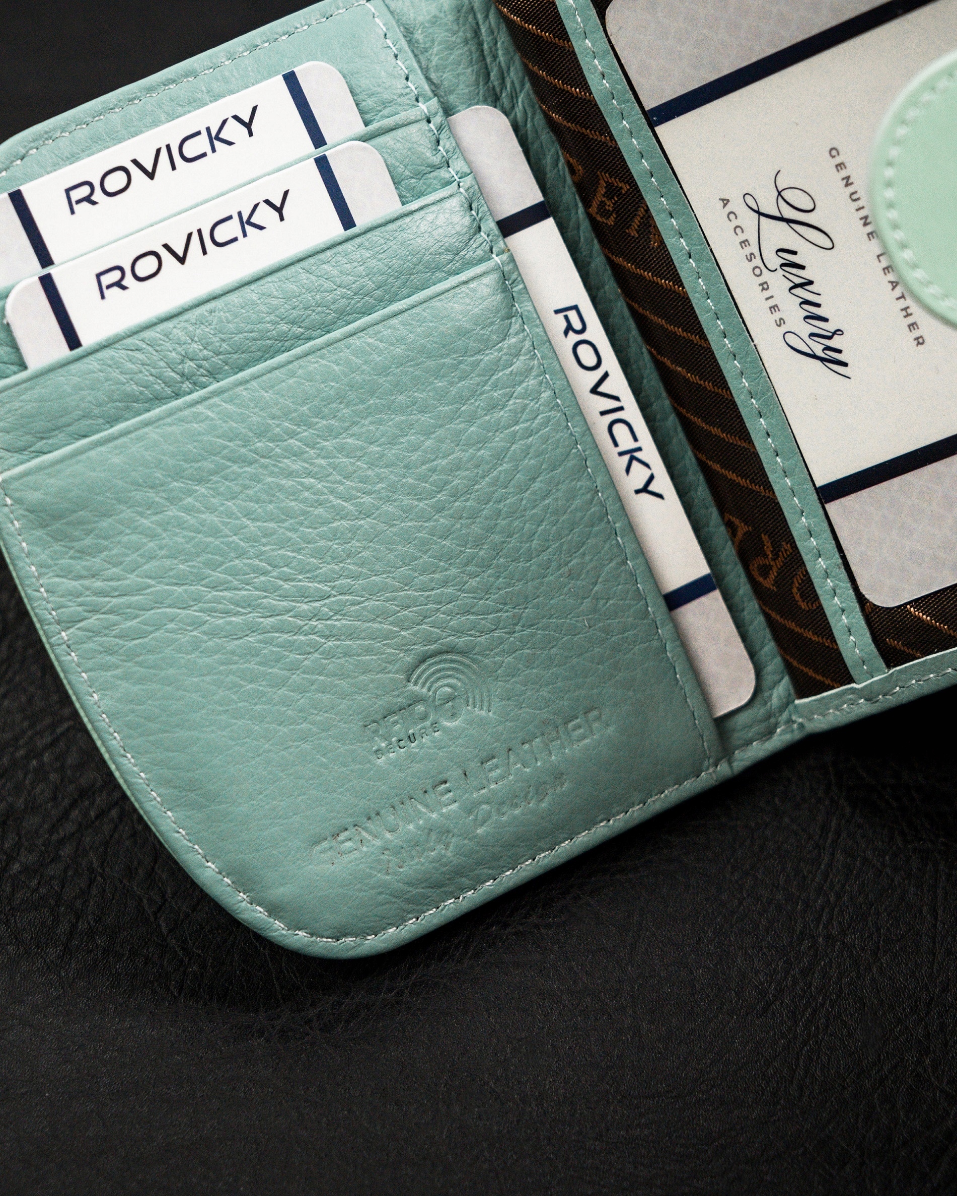 RFID означает метод, использующий радиоволны для передачи данных. Используется в технологии бесконтактного использования банковской карты. Кошельки с RFID-защитой имеют внутри специальный материал, защищающий банковские карты от атак со стороны RFID-считывателей. Как это работает - с кошельком в кармане брюк, куртки и т. д. кто-то может разместить сканер кода рядом с карманом и сканировать данные с карты. Если у вас карта в кошельке с RFID-защитой, сканер не будет работать. Ваши карты/деньги в безопасности!