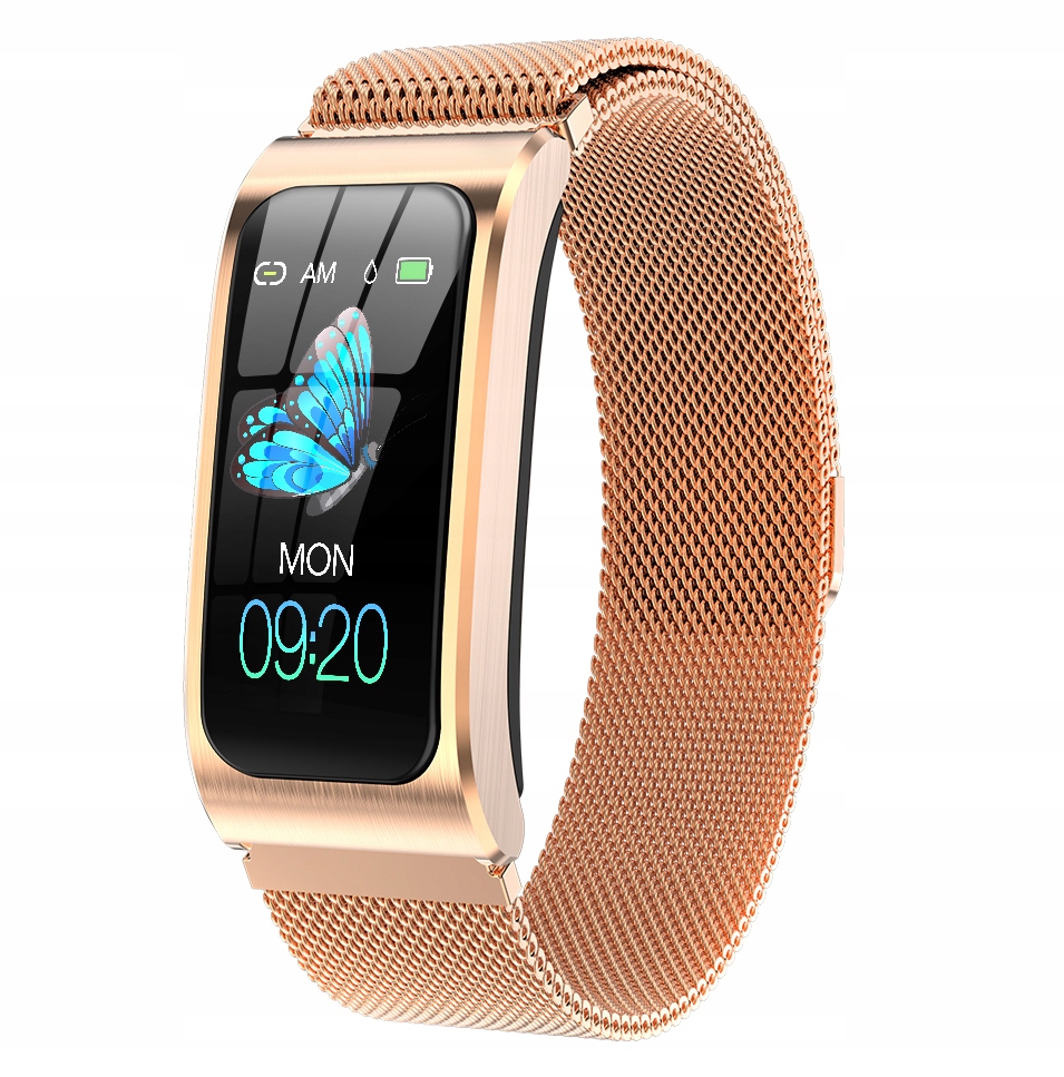 Последняя модель SmartBand AK12, сочетающая роскошный дизайн с современной функциональностью. Элегантный для вечерних выходов и в то же время стильный для повседневного использования. Он имеет 5 переменных циферблатов на выбор в приложении телефона. Он оснащен рядом чрезвычайно полезных и практичных функций, которые удовлетворят каждую женщину. Используемые материалы высочайшего качества гарантируют, что он выдержит ежедневные испытания. Он оснащен большим красочным дисплеем, заключенным в красивый стальной корпус. Все это дополняет элегантный стальной браслет в миланском стиле с магнитной застежкой. Высший класс водонепроницаемости IP68 позволяет легко мыть руки или пользоваться под дождем. Они имеютемкий аккумулятор емкостью 140 мАч, что позволяет использовать часы 2-5 дней, а в режиме ожидания до 20 дней!