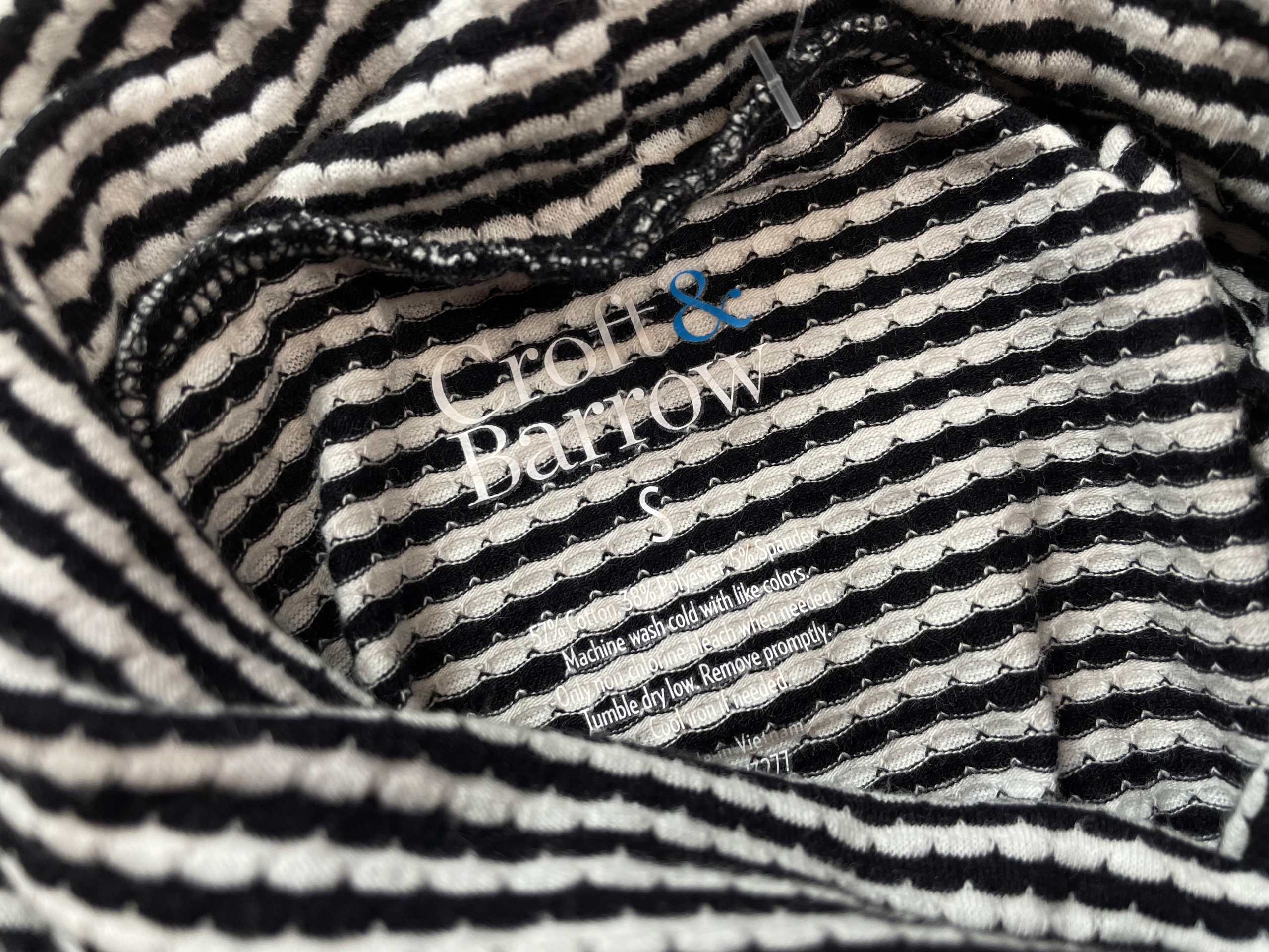 - Женский гольф от Croft & Barrow. Гольф - все в белых и белых узорах. Материал блузки имеет полосатую структуру. У этого есть простой порез и длинные рукава. Это гибко, очень хорошо приспосабливается к фигуре. Это будет вписаться во многие как повседневную, так и элегантную стилизацию. Импортируется прямо из США