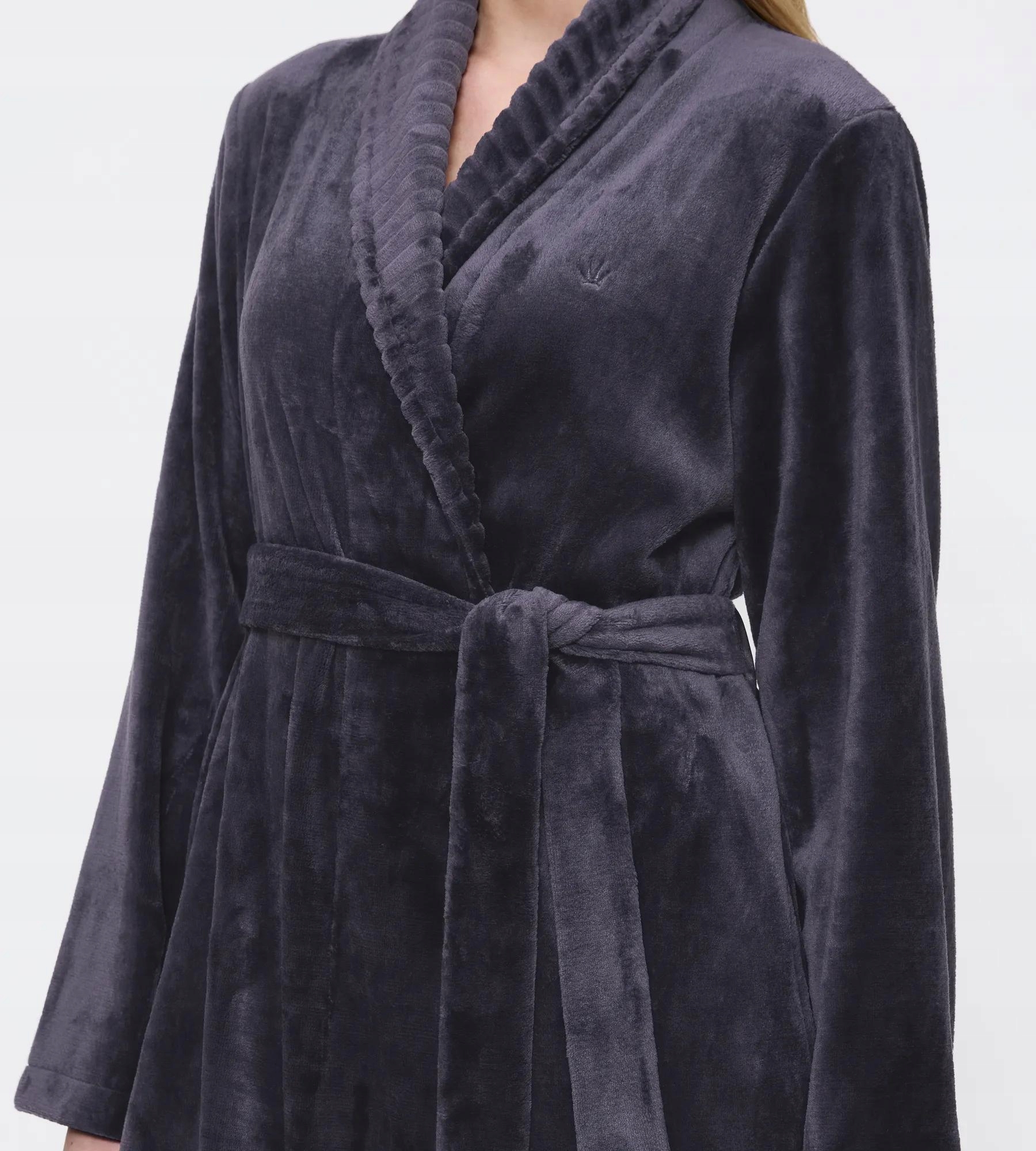 Роскошный. Ребристый. Невероятно уютно. На улице может быть холодно, но вас это совершенно не побеспокоит, когда вы закутаетесь в этот пушистый халат.