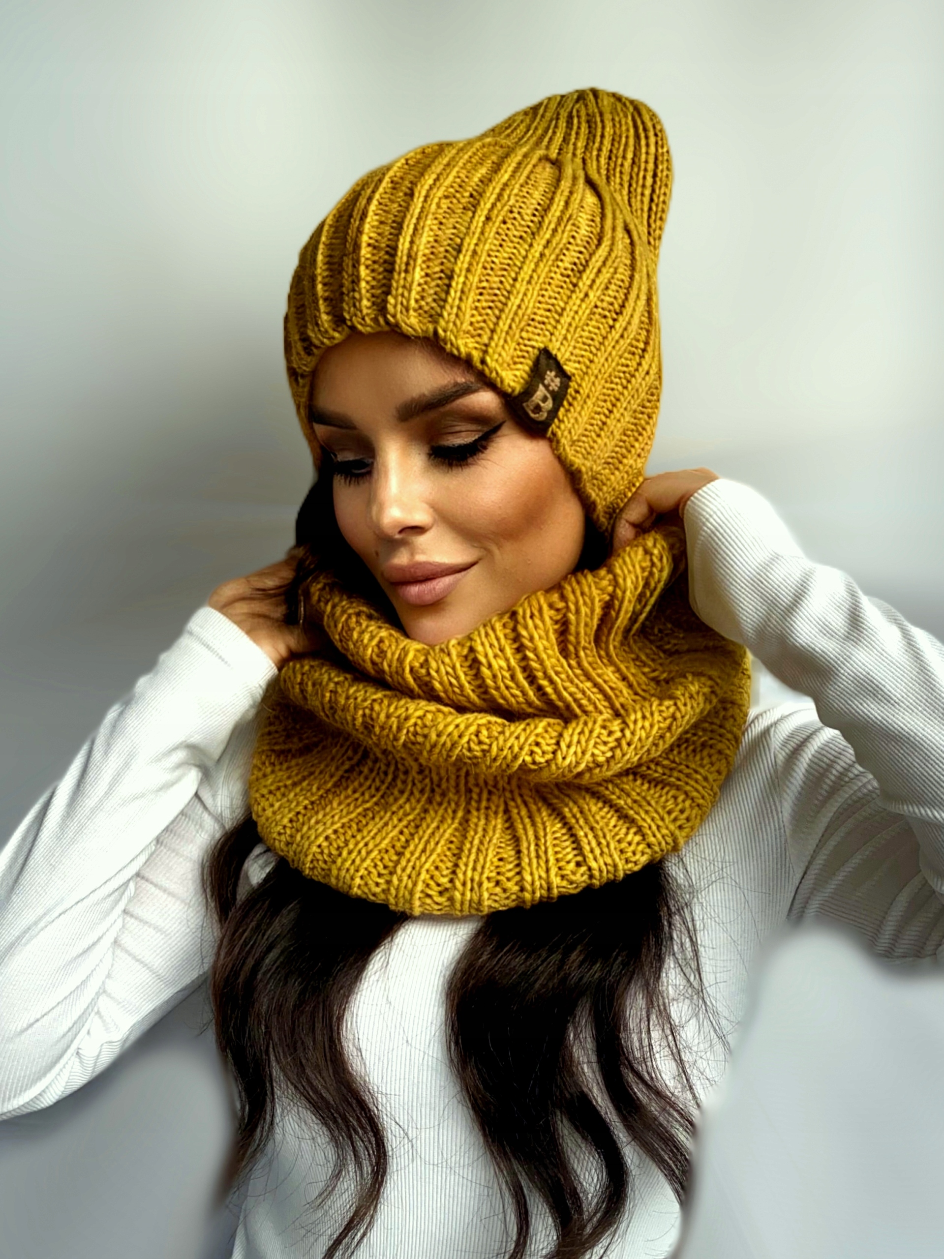 ЖІНОЧИЙ КОМПЛЕКТ ШАПКА СПІДНИЦЯ ГОЛЬФ ВЕЛИКИЙ ТЕПЛИЙ КОМПЛЕКТ ЗИМА ШЕРСТЬ КОЛ.