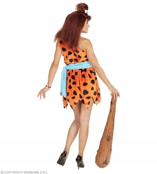 Наряд пещерного человека, вдохновленный популярной сказкой. Оранжевая туника с черными пятнами и рваными краями. Одно плечо обнажено. В комплект входит синий пояс.