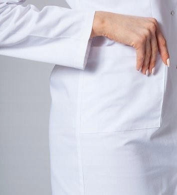 ЖІНОЧИЙ МЕДИЧНИЙ ЛАБОРАТОРНИЙ ХАЛАТ БІЛА МІЦНА ШКІРА L